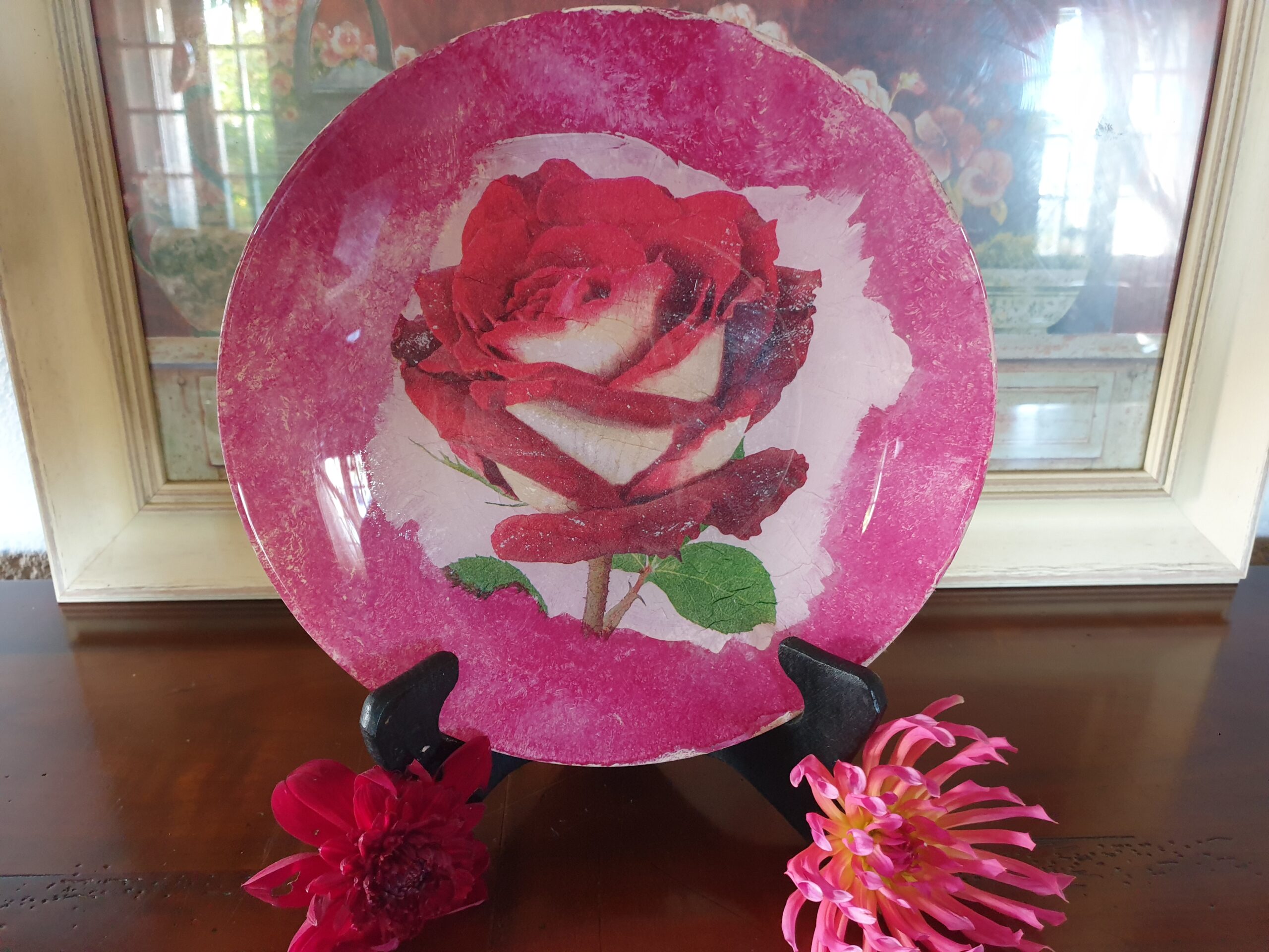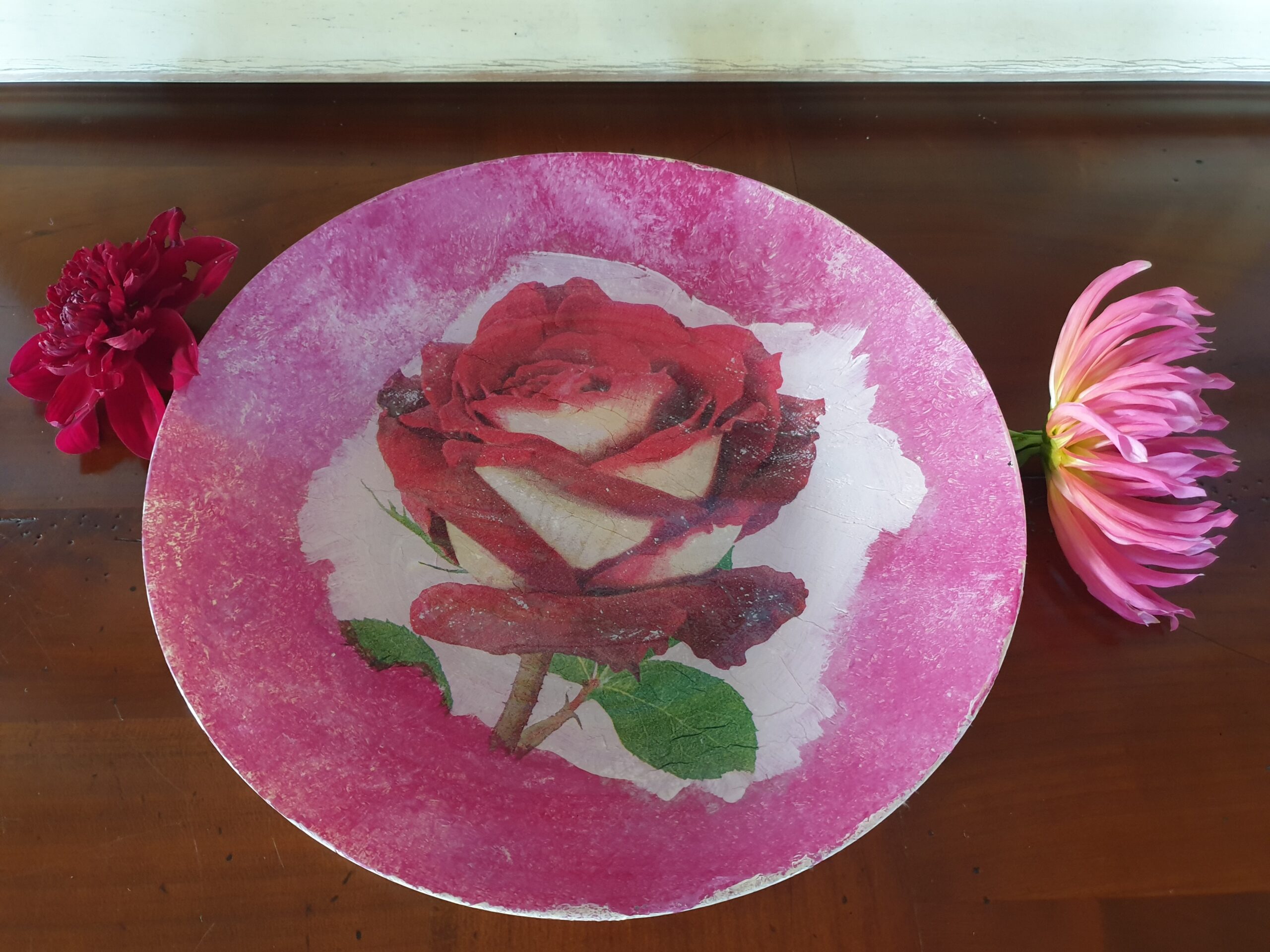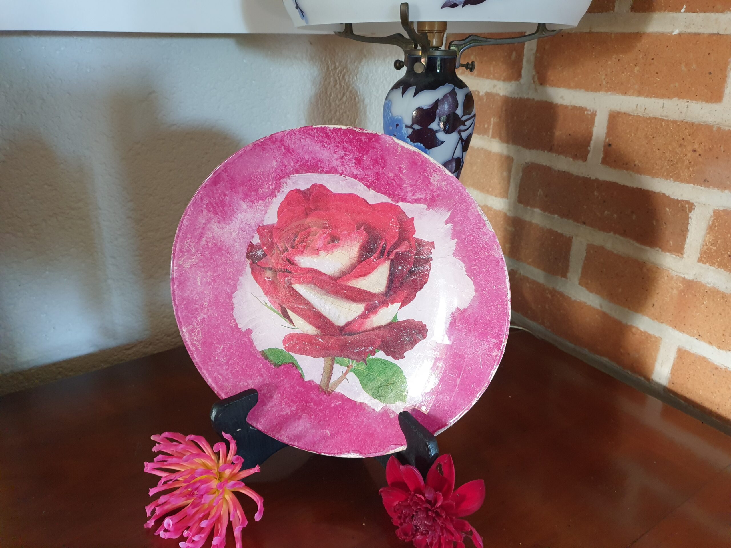 Jolie Assiette en Verre et Déco-Patch Rose Rouge et Blanche : Élégance et Originalité