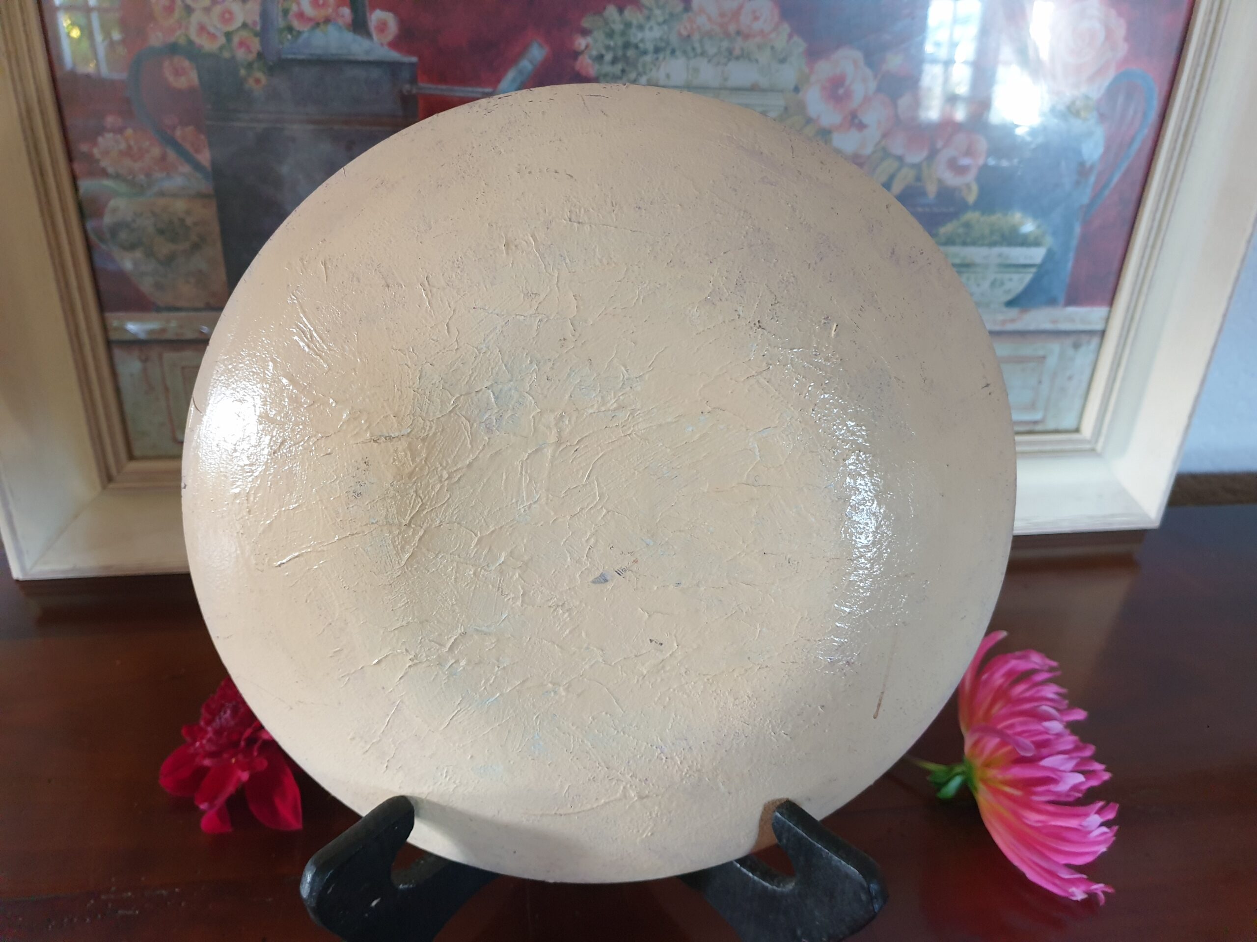 Posée sur un meuble ou accrochée au mur, cette assiette devient une véritable œuvre d’art qui capte la lumière et attire l’attention. Elle s’harmonise parfaitement avec une ambiance romantique ou shabby chic.