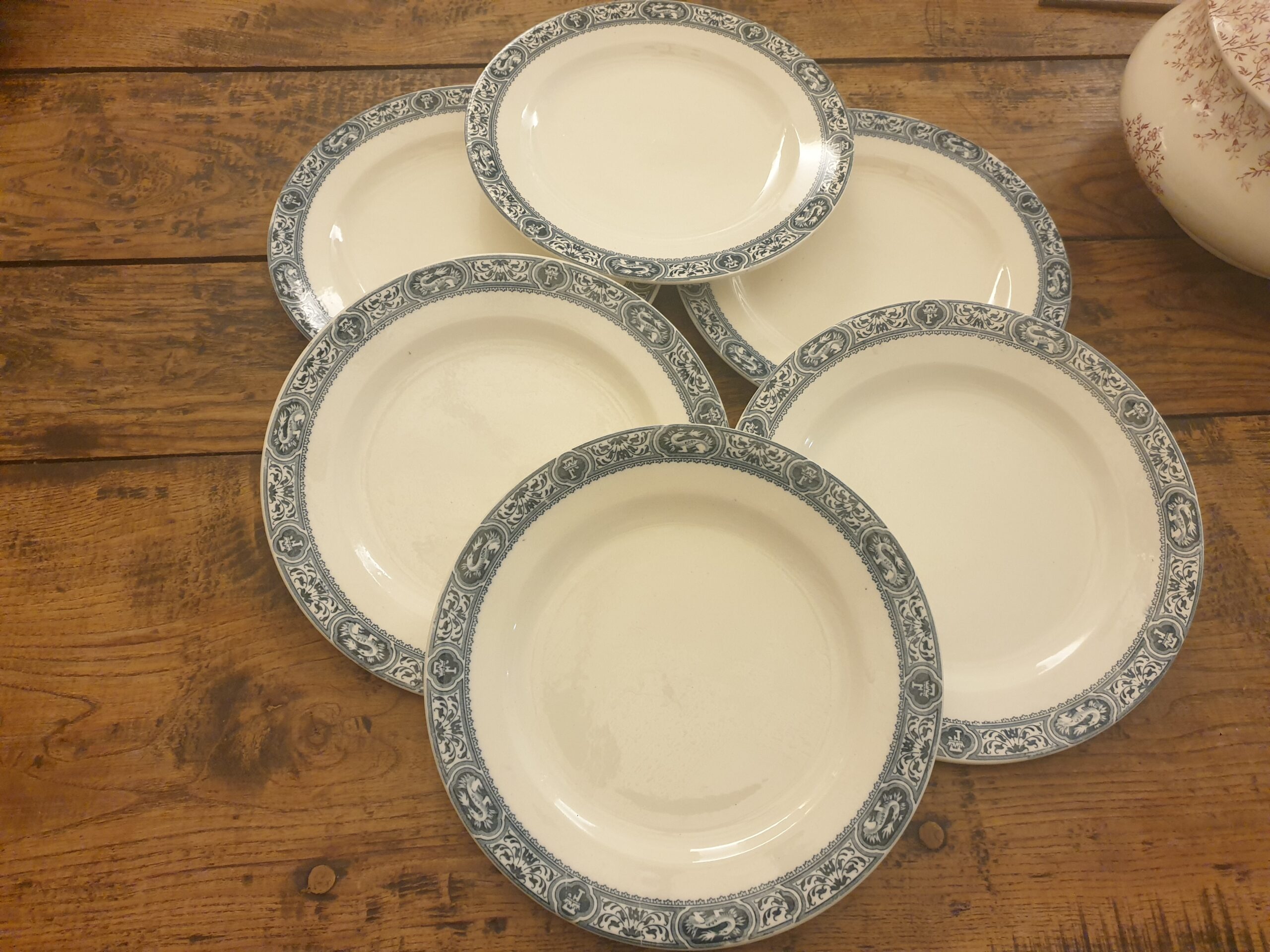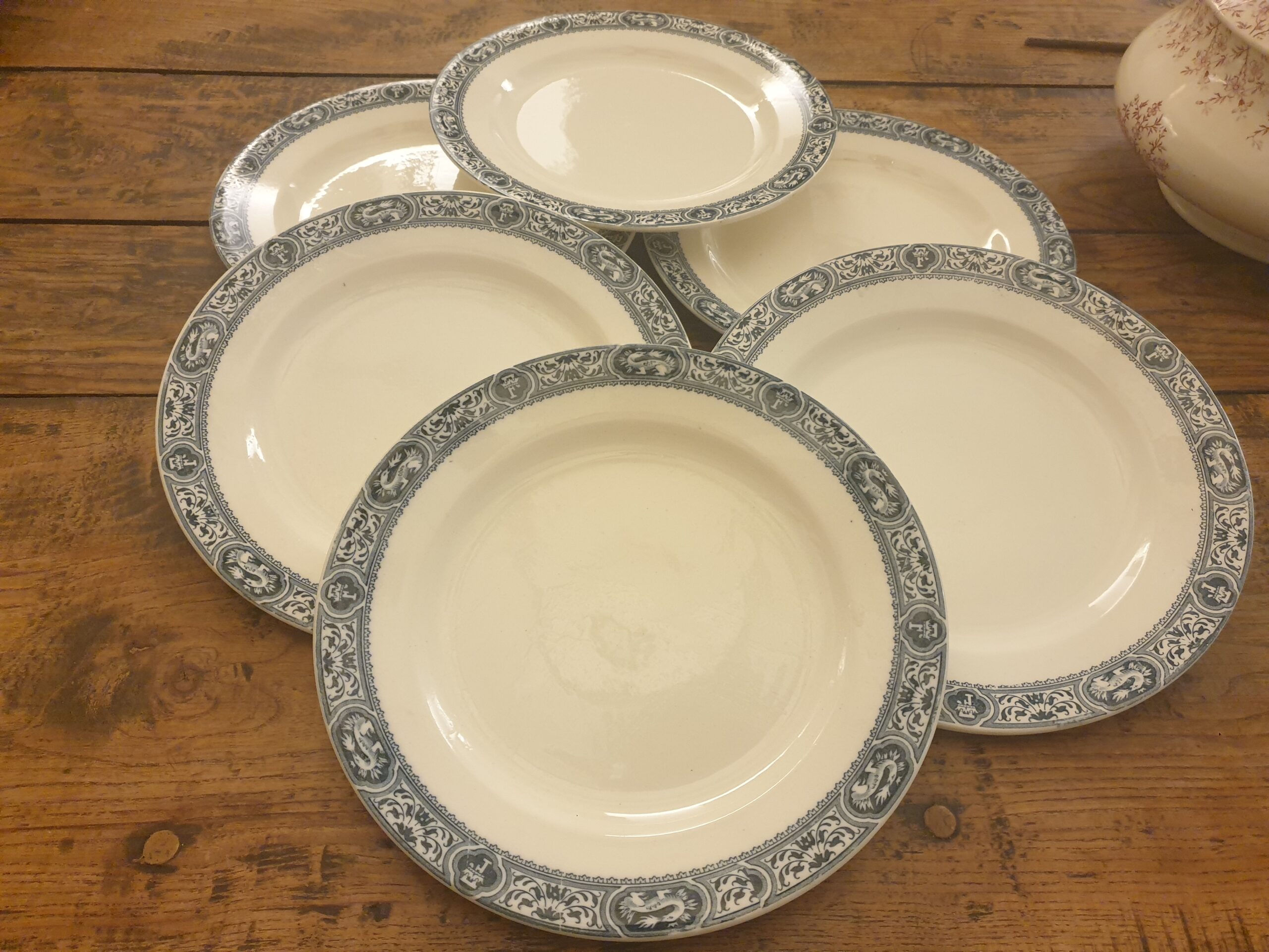 Fabriquées en terre de fer, ces assiettes allient robustesse et délicatesse. Ce matériau, prisé au XIXe siècle, offre une grande solidité tout en conservant un aspect raffiné. Sa surface lisse et légèrement ivoire met en valeur le décor bleu profond, créant un contraste élégant et intemporel.