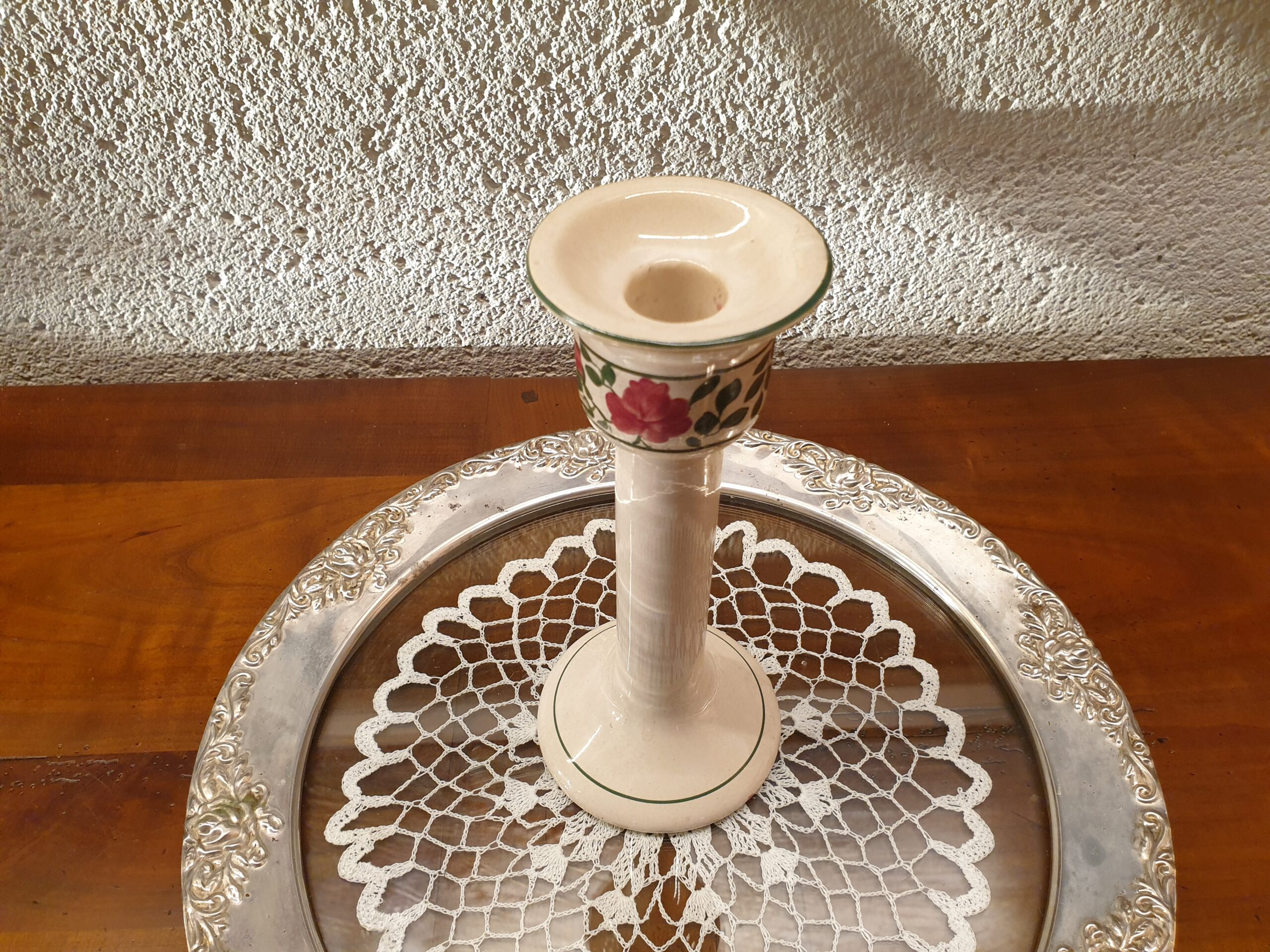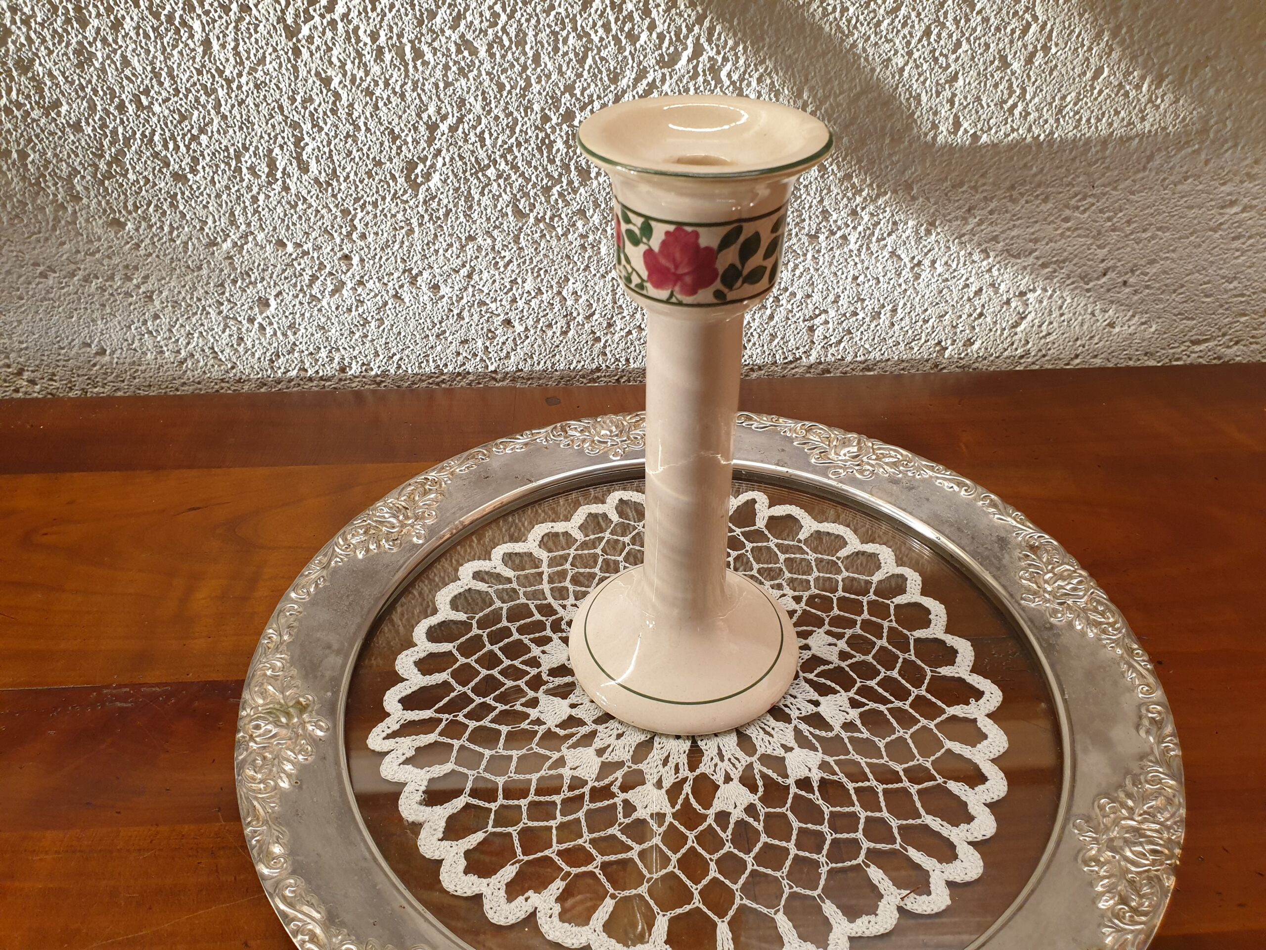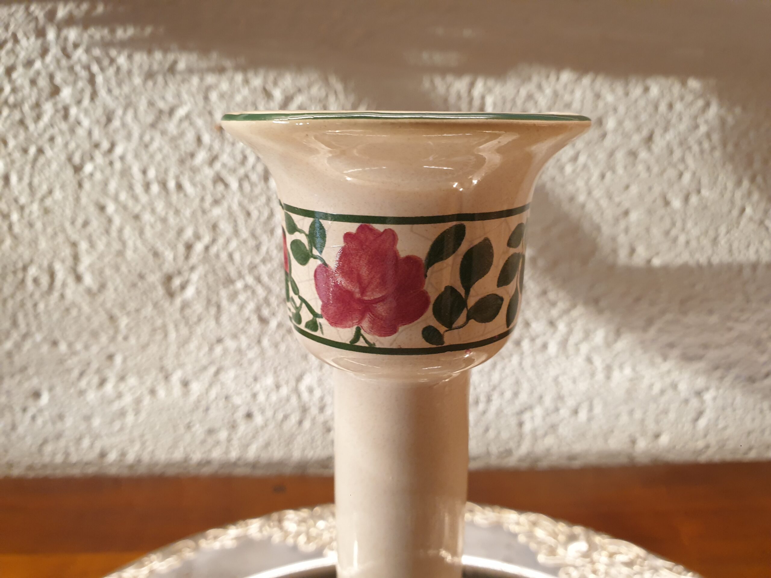 Bougeoir Ancien en Céramique au Décor de Roses Rouges : Charme et Élégance