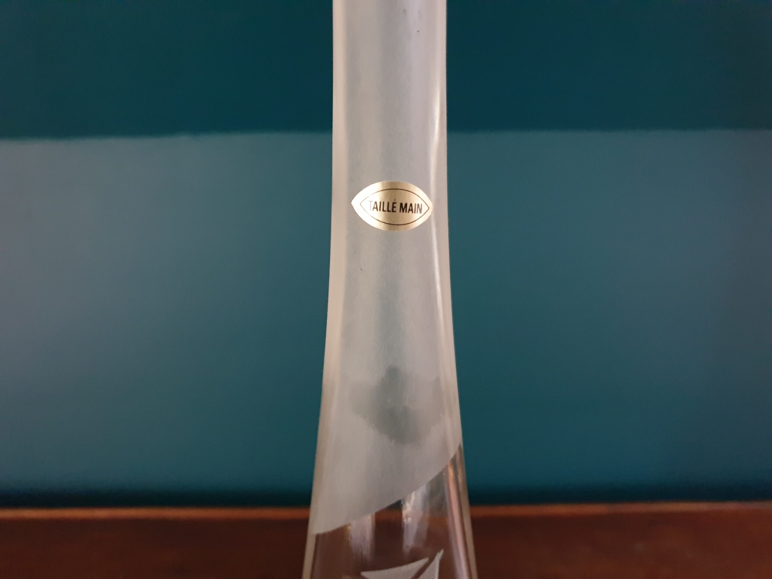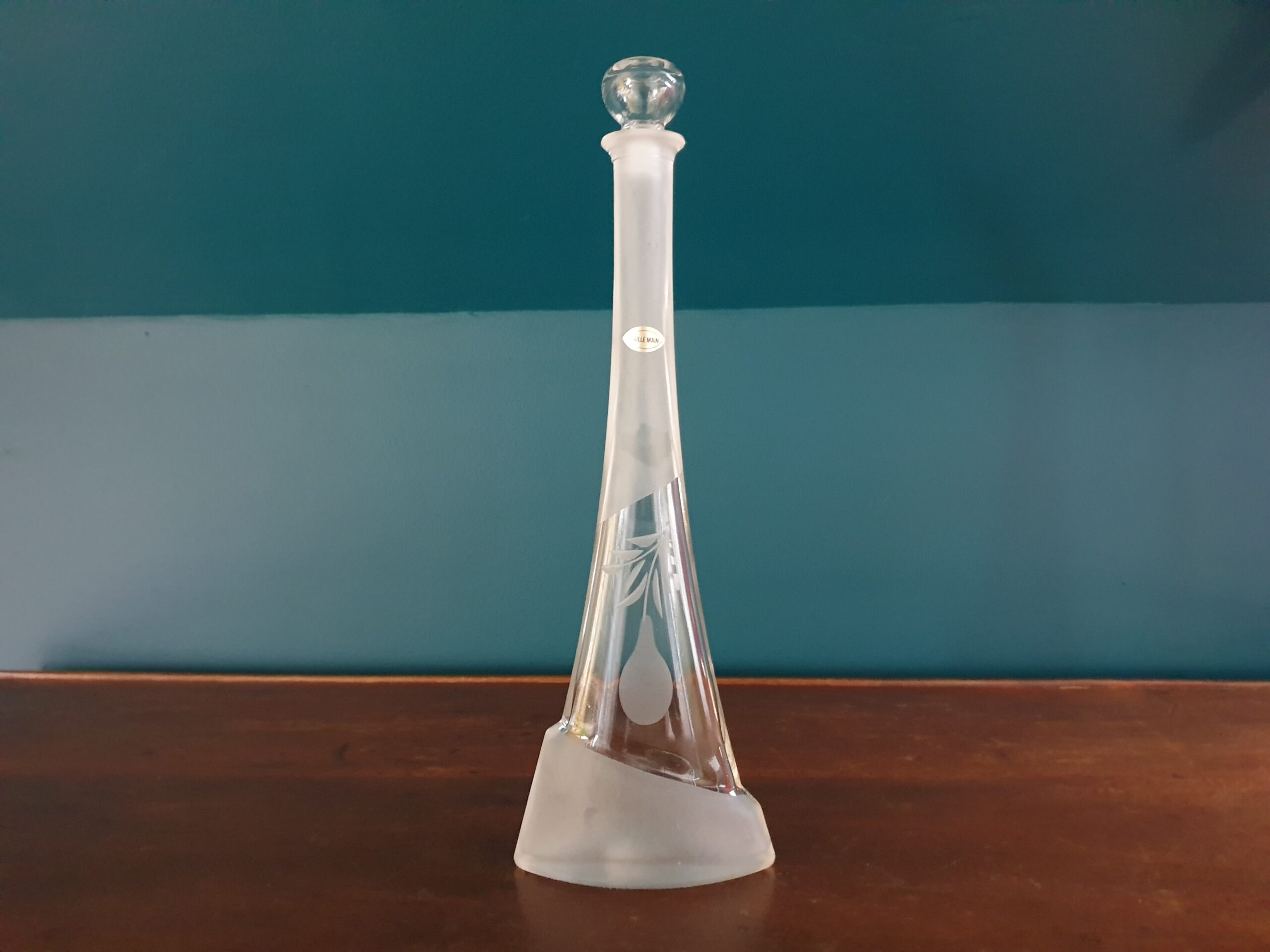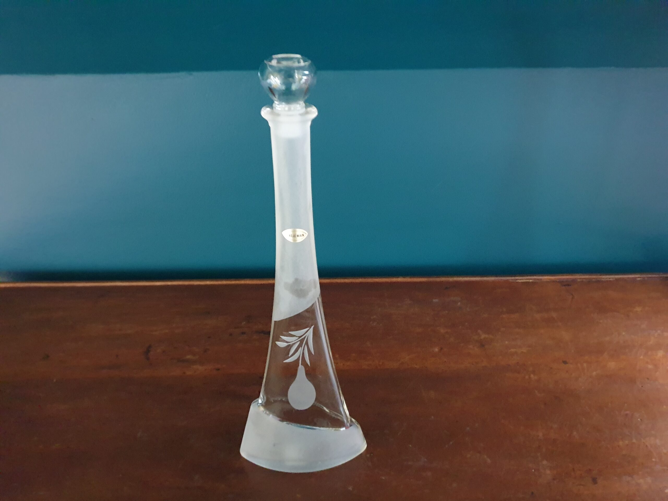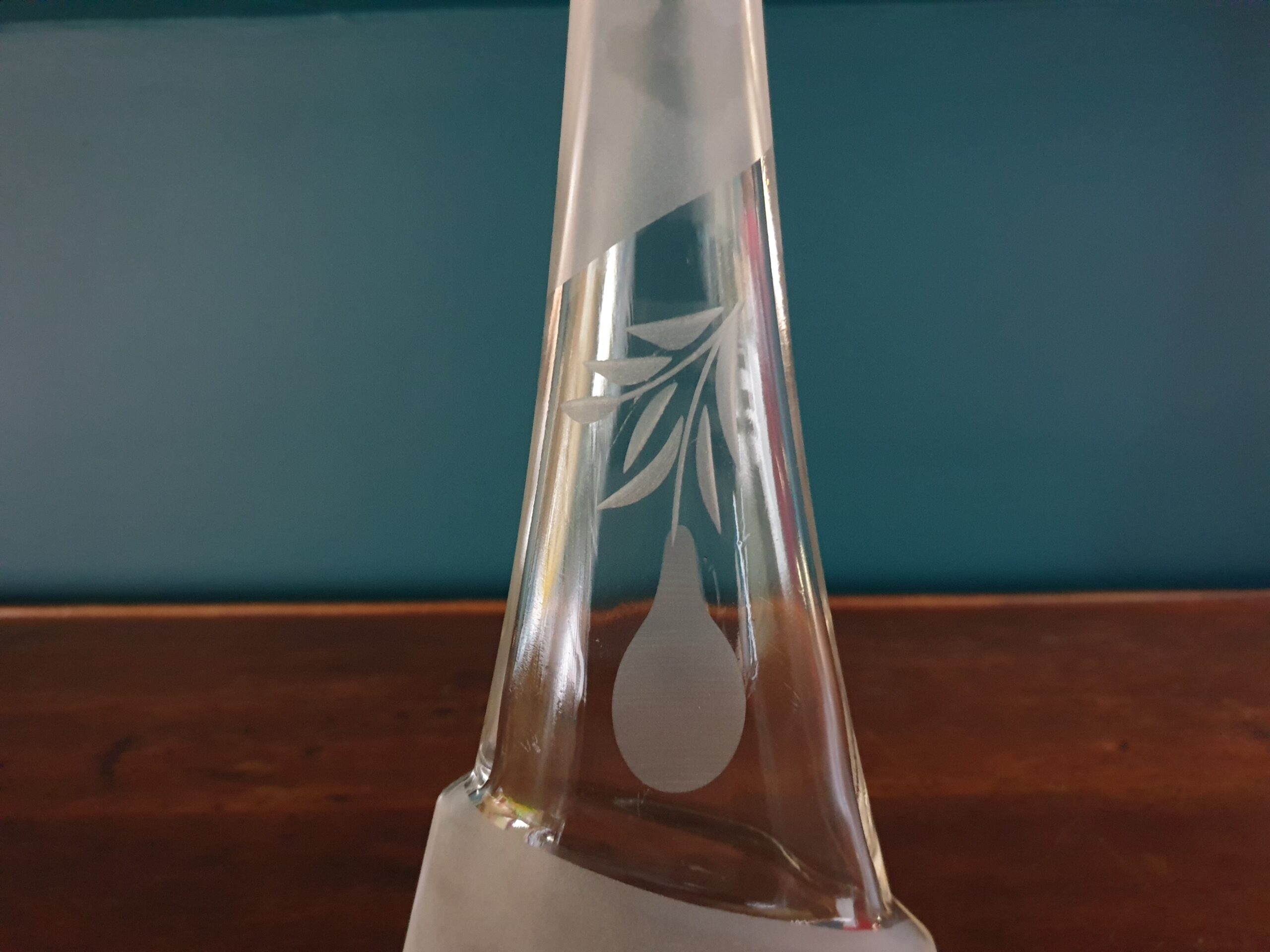 Le décor de poire gravé avec une finition dépoli confère à cette bouteille un aspect élégant, tout en captant la lumière d’une manière unique. Ce travail de gravure délicat en fait une pièce unique et pleine de caractère.