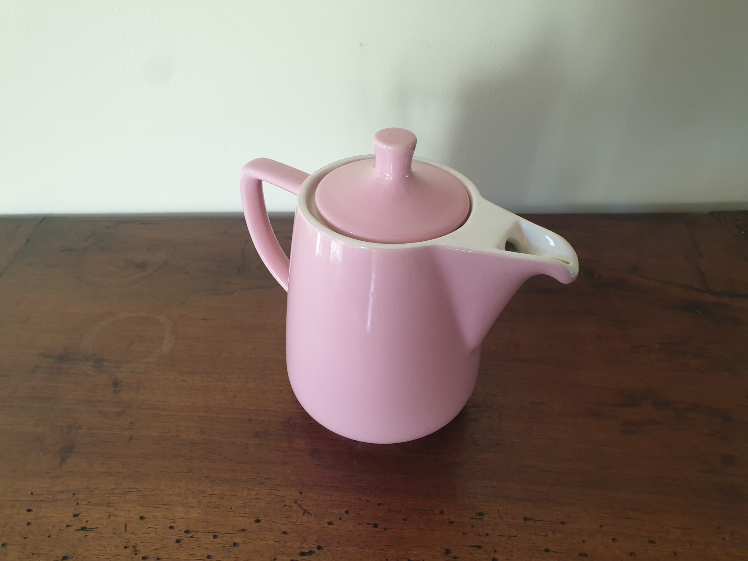 Cette petite cafetière ou théière vintage des années 50-60 apportera une touche de nostalgie et de charme à vos pauses thé ou café. Sa couleur rose pastel douce évoque la gourmandise et l’élégance d’une époque rétro, parfaite pour accompagner un bon dessert.