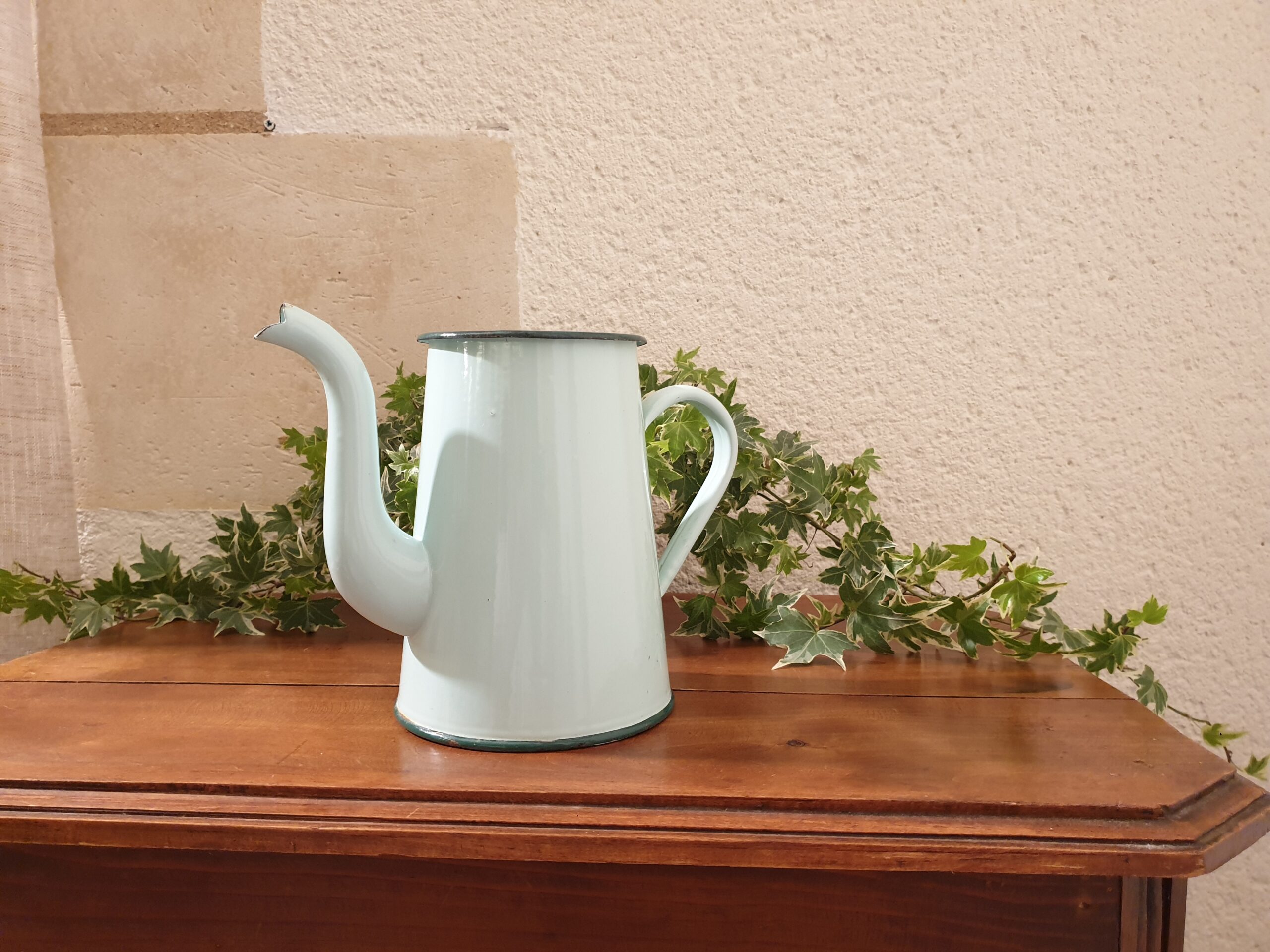 Ancien Pichet Émaillé Vert Céladon : Élégance Vintage pour Votre Intérieur et Extérieur