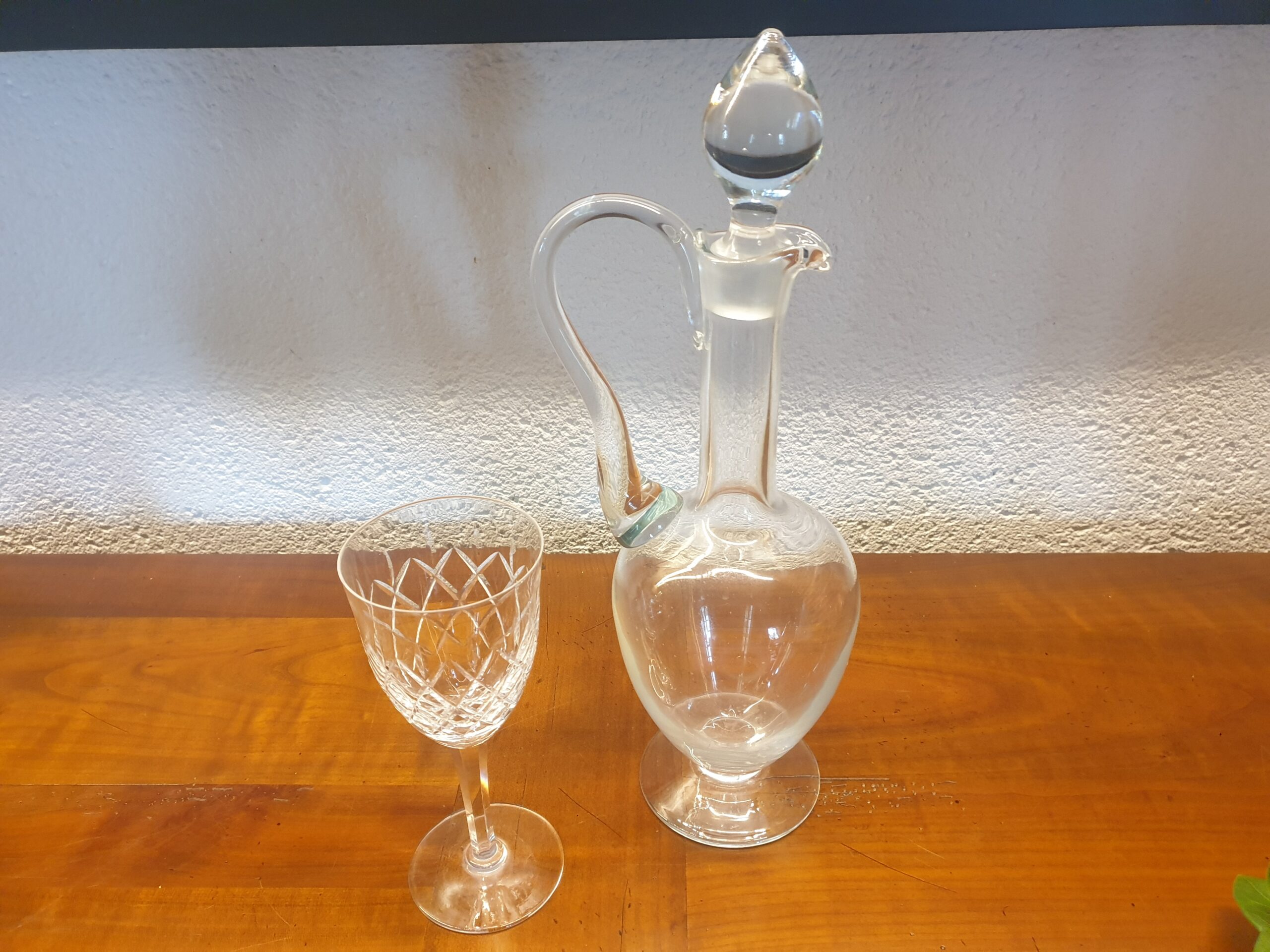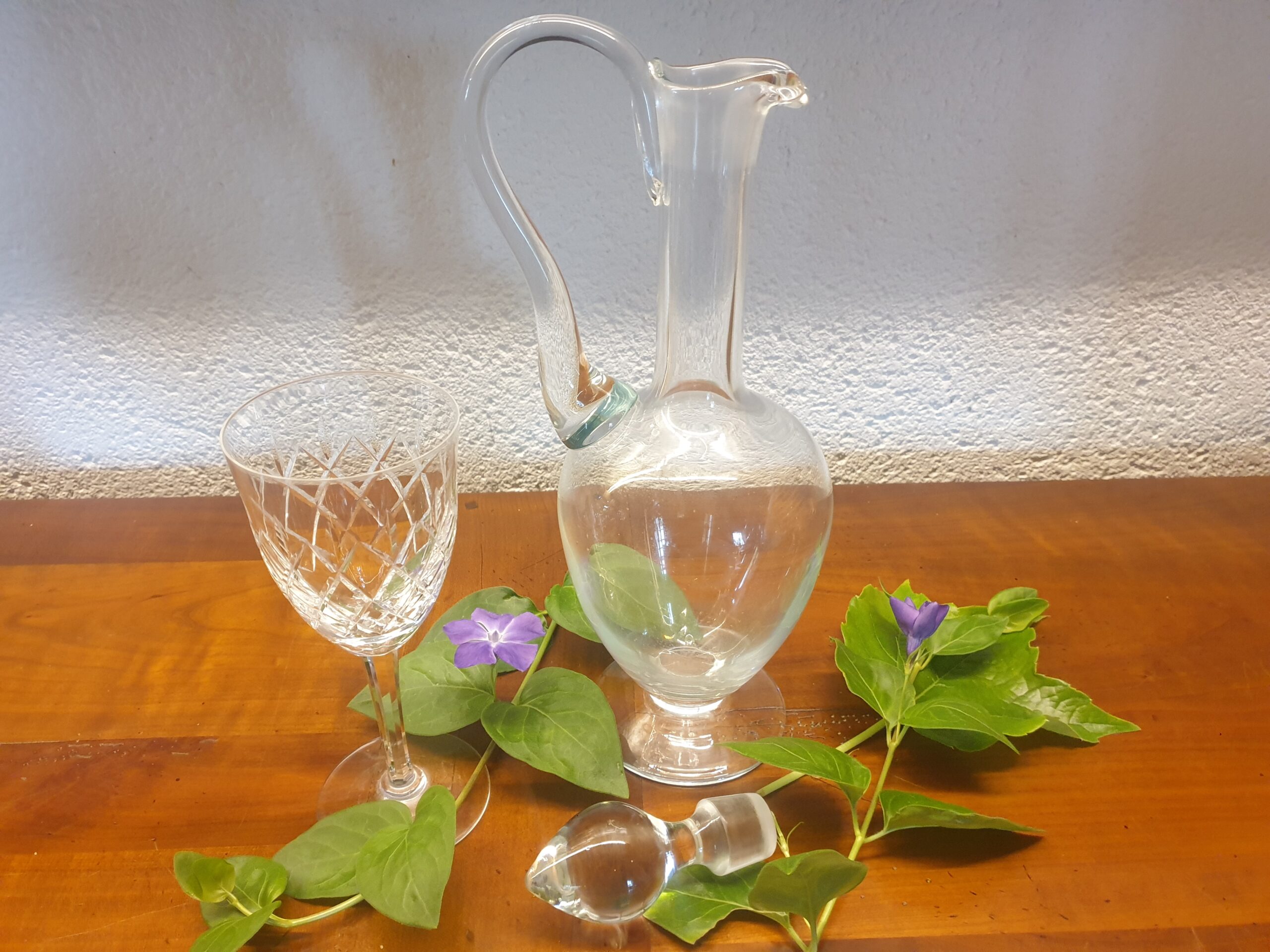 Le verre utilisé pour cette carafe est d’une belle clarté, mettant en valeur le contenu tout en reflétant la lumière avec élégance. Sa surface lisse et ses proportions harmonieuses témoignent d’un travail de qualité, pensé pour durer.