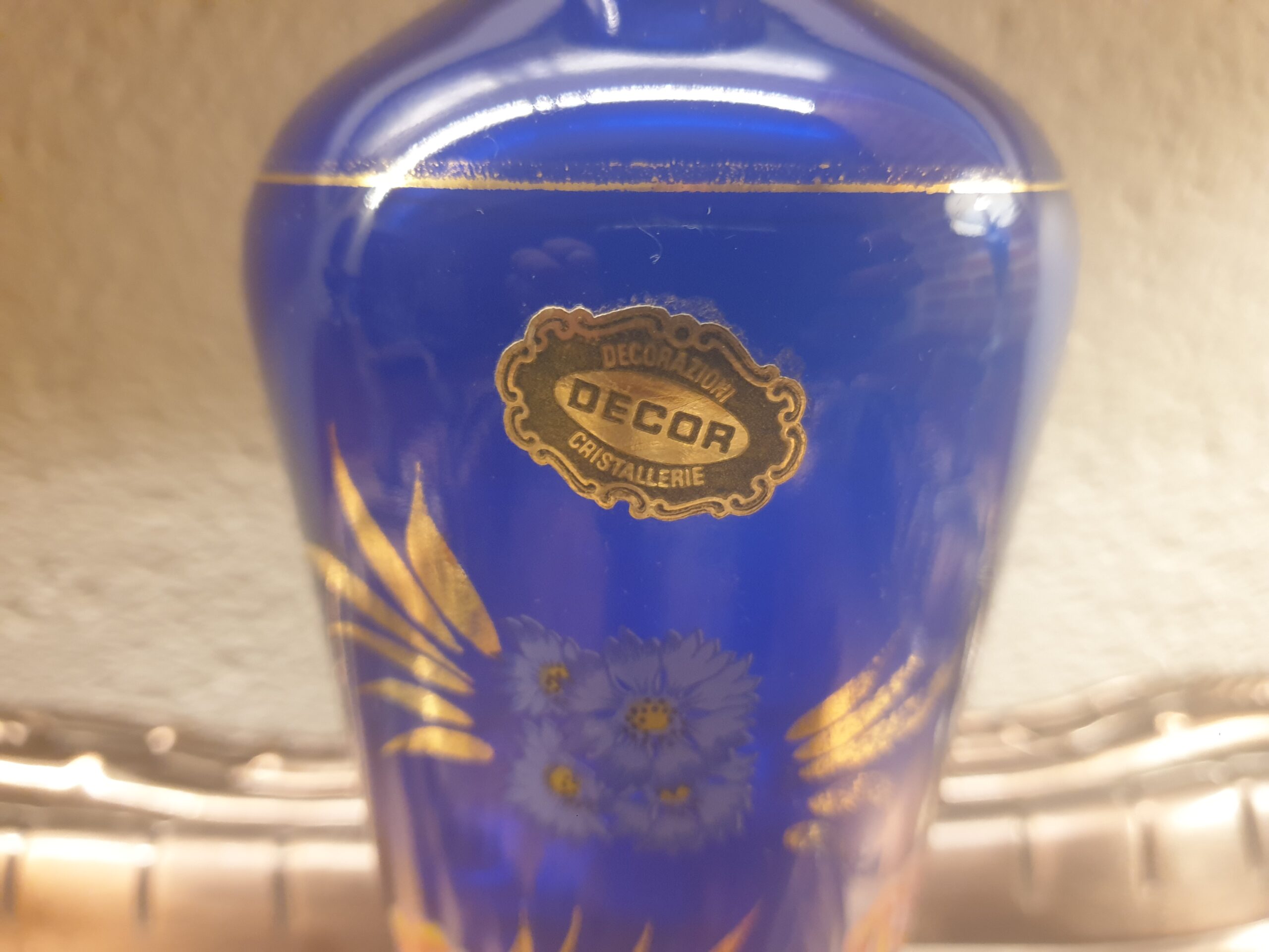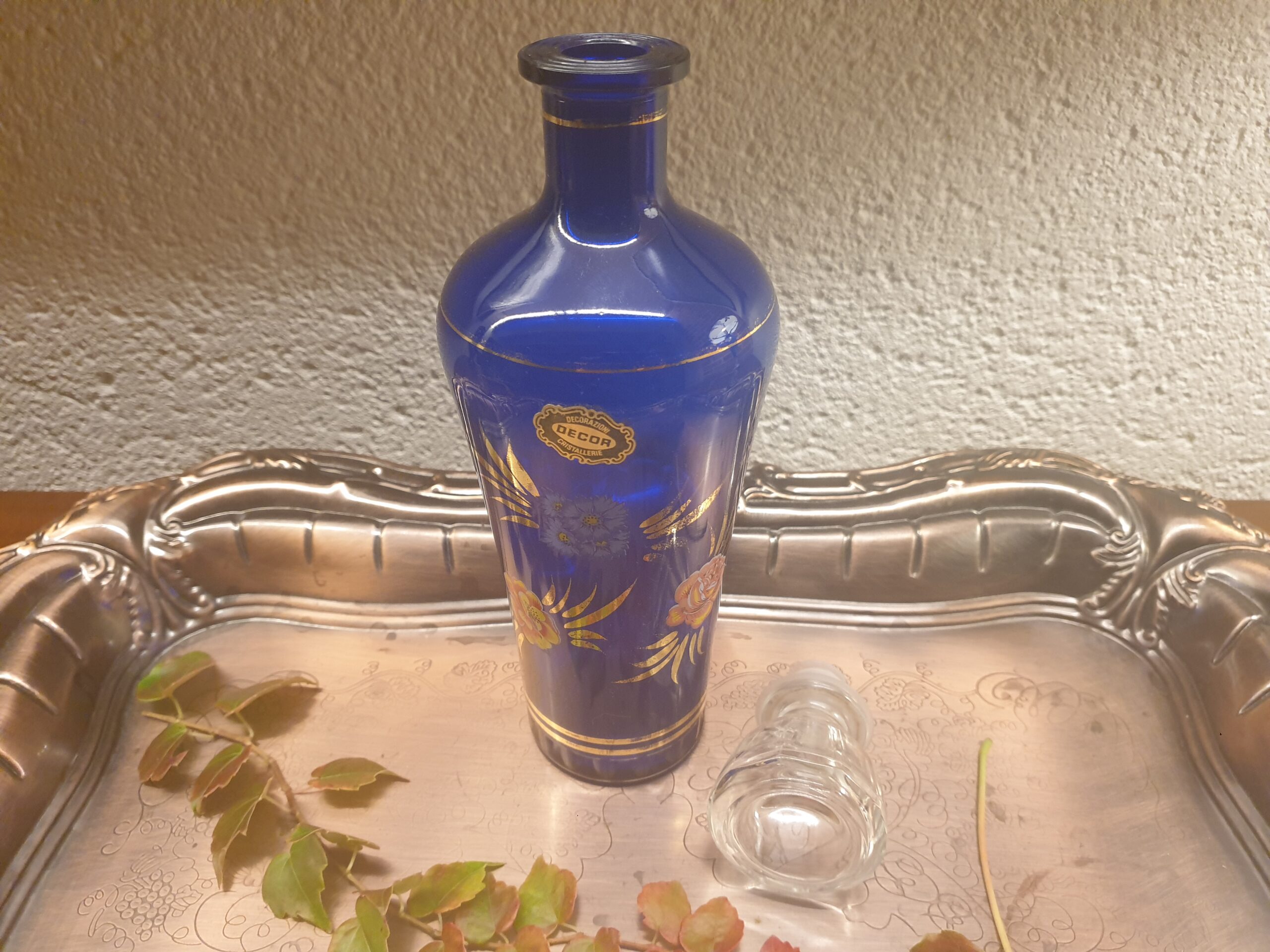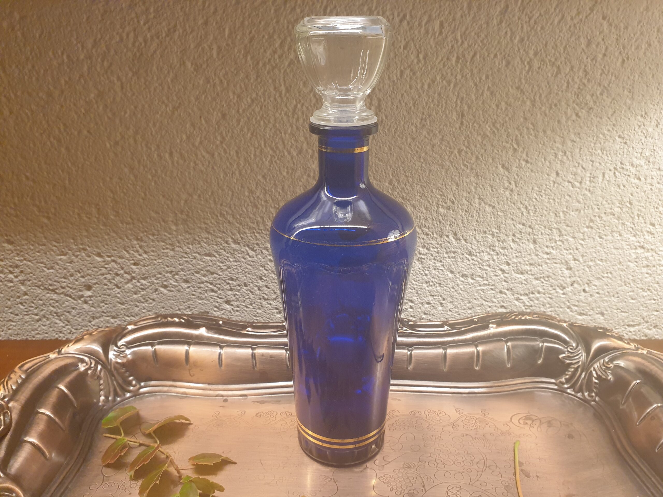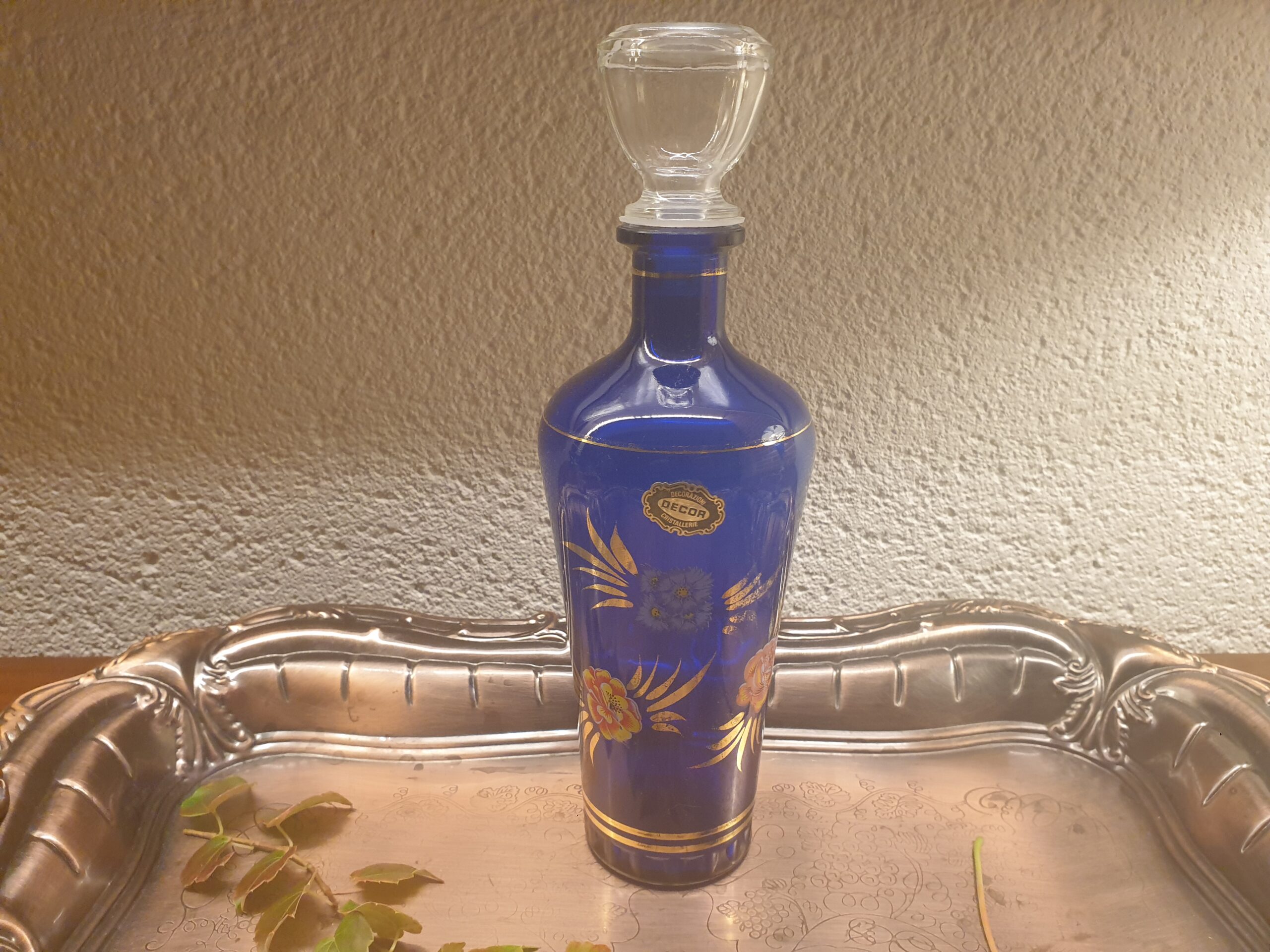Sublimez vos instants de dégustation avec cette carafe italienne en verre bleu cobalt et liseré or, un choix parfait pour allier beauté, histoire et raffinement.