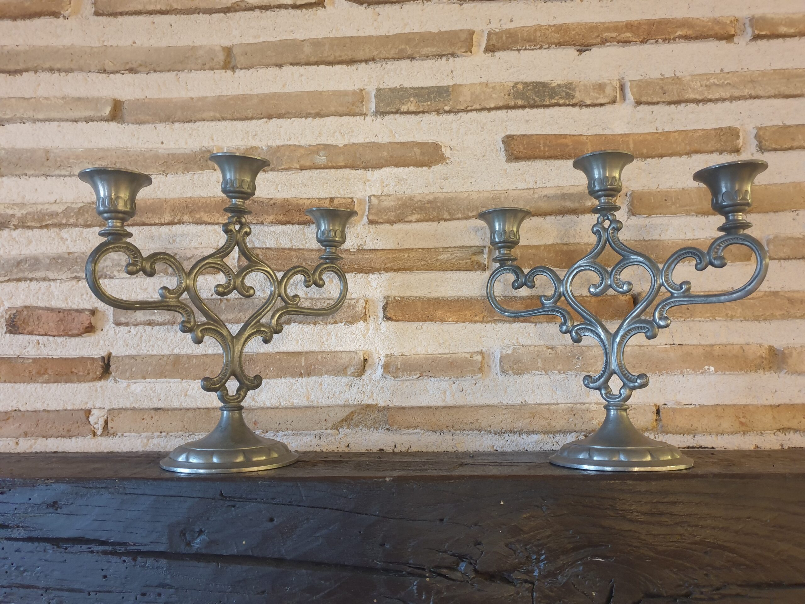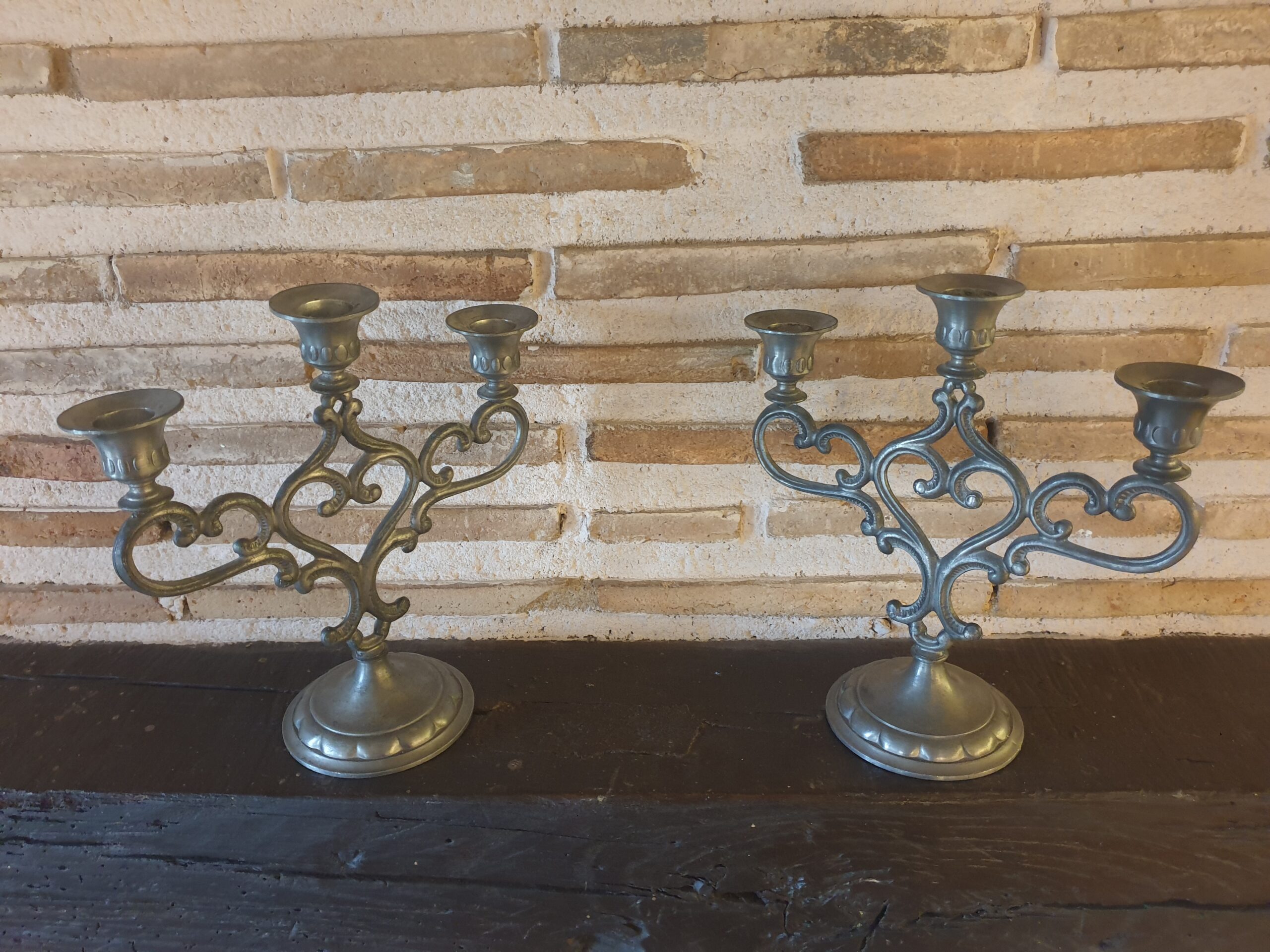 L’étain, connu pour sa robustesse et sa brillance discrète, offre un rendu élégant et classique. Ces chandeliers se patinent avec le temps, renforçant leur charme ancien et leur authenticité.
