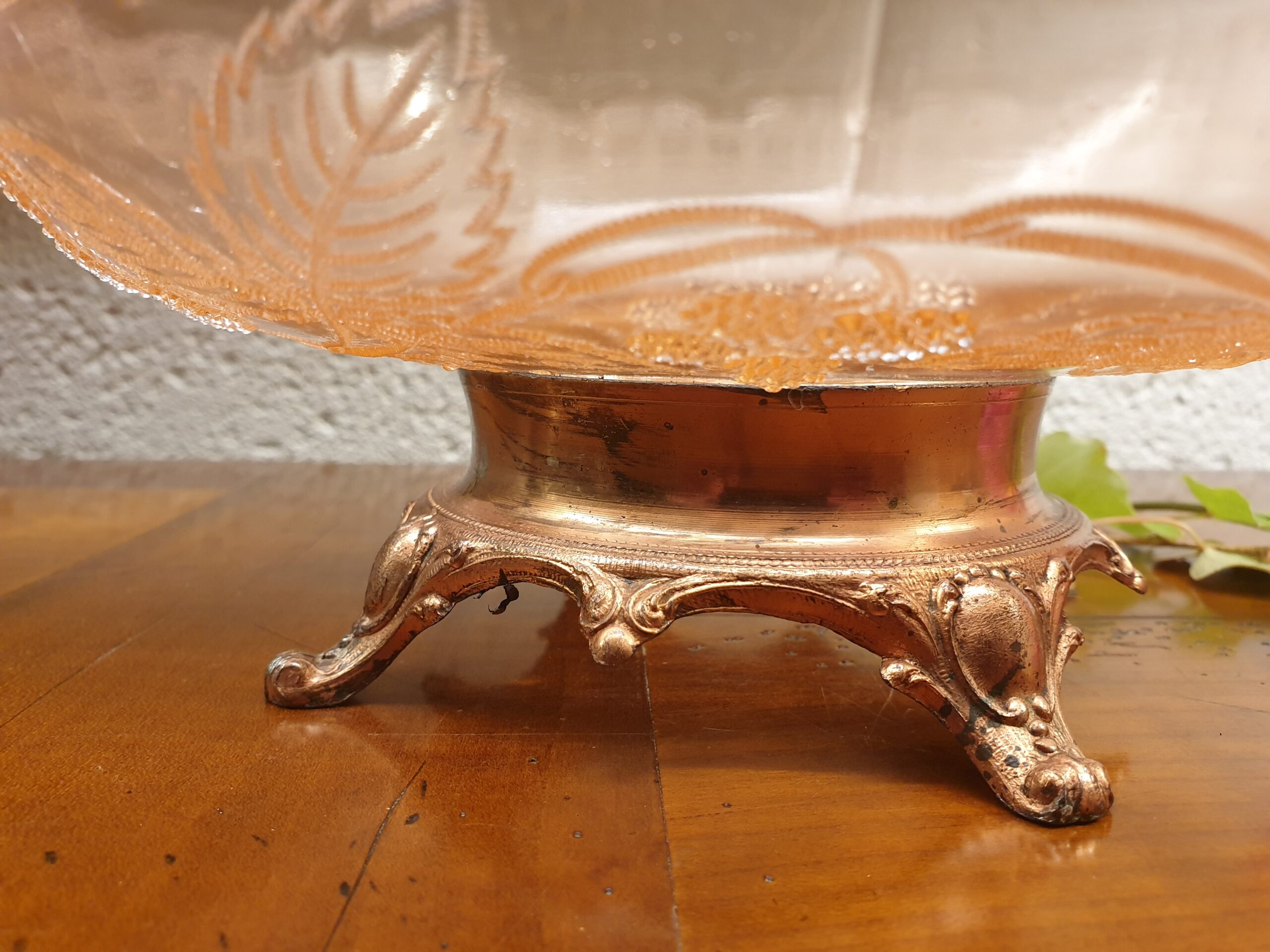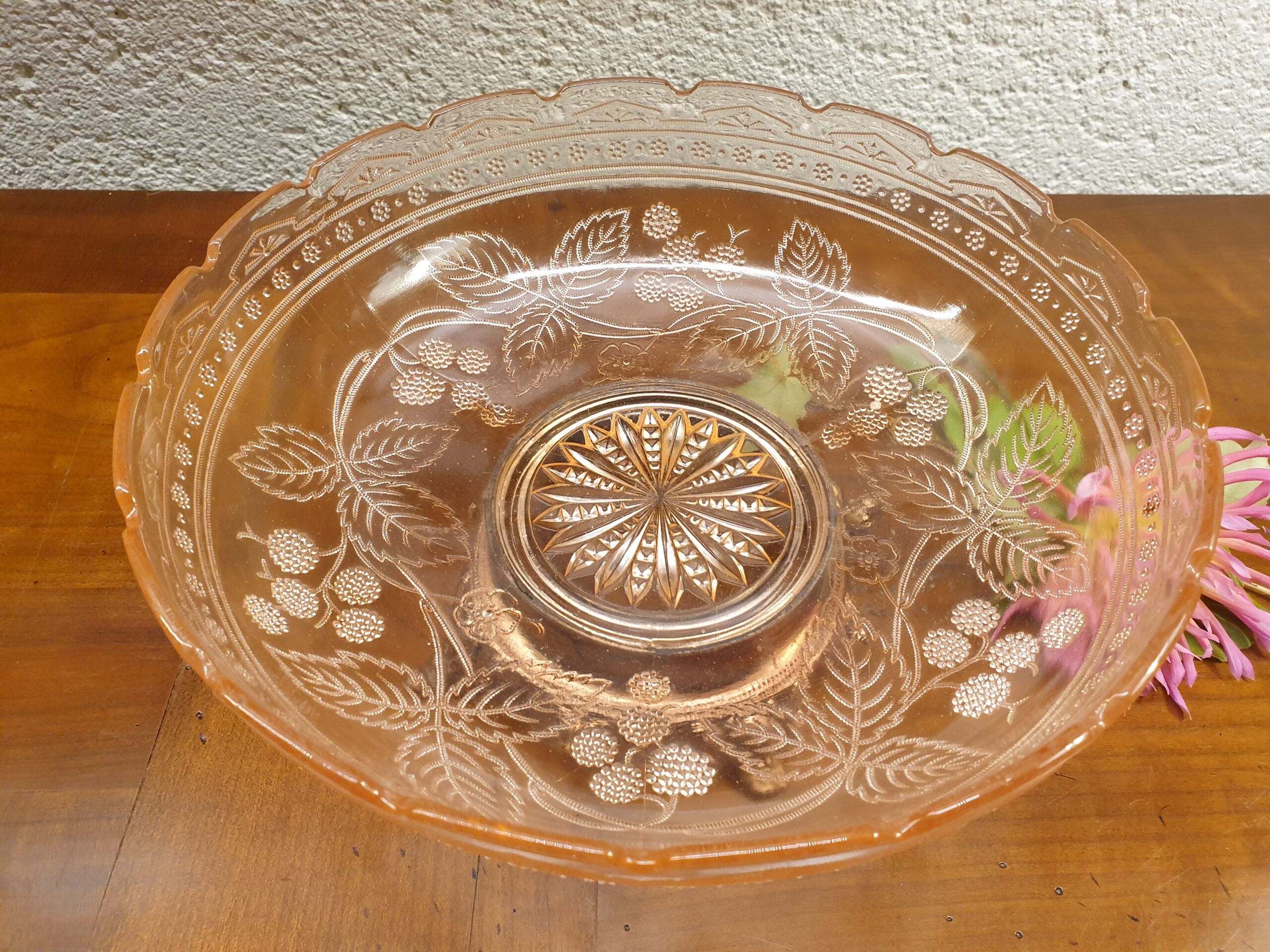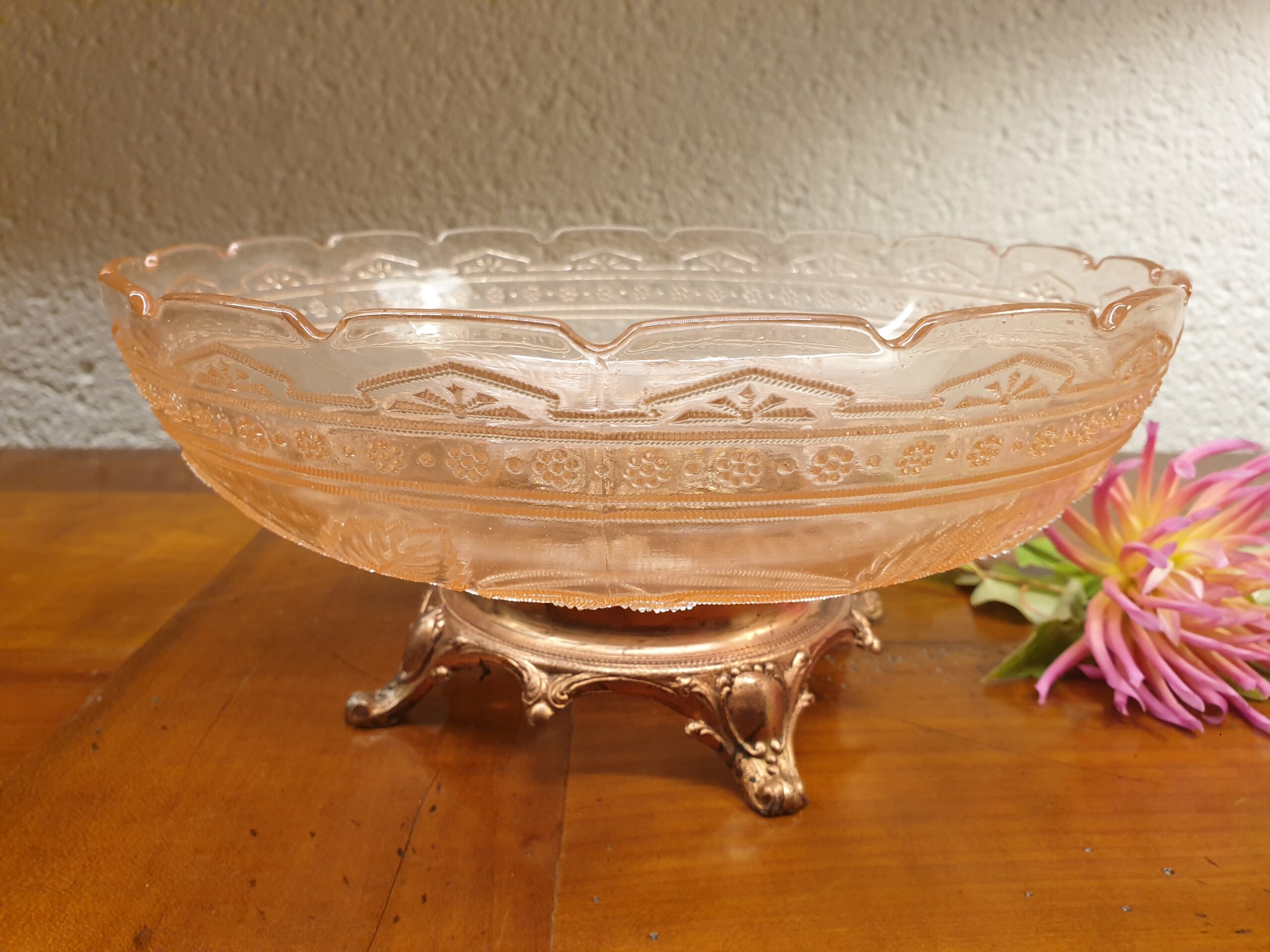 Avec ses formes géométriques équilibrées, son verre rose et ses motifs stylisés, cette coupe illustre parfaitement l’élégance du design Art Déco. Son allure sculpturale et son esthétique soignée en font un objet décoratif aussi beau que pratique.