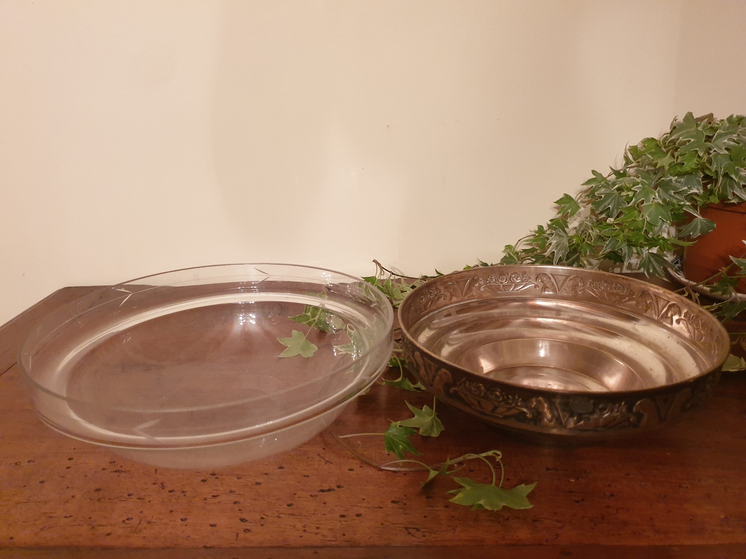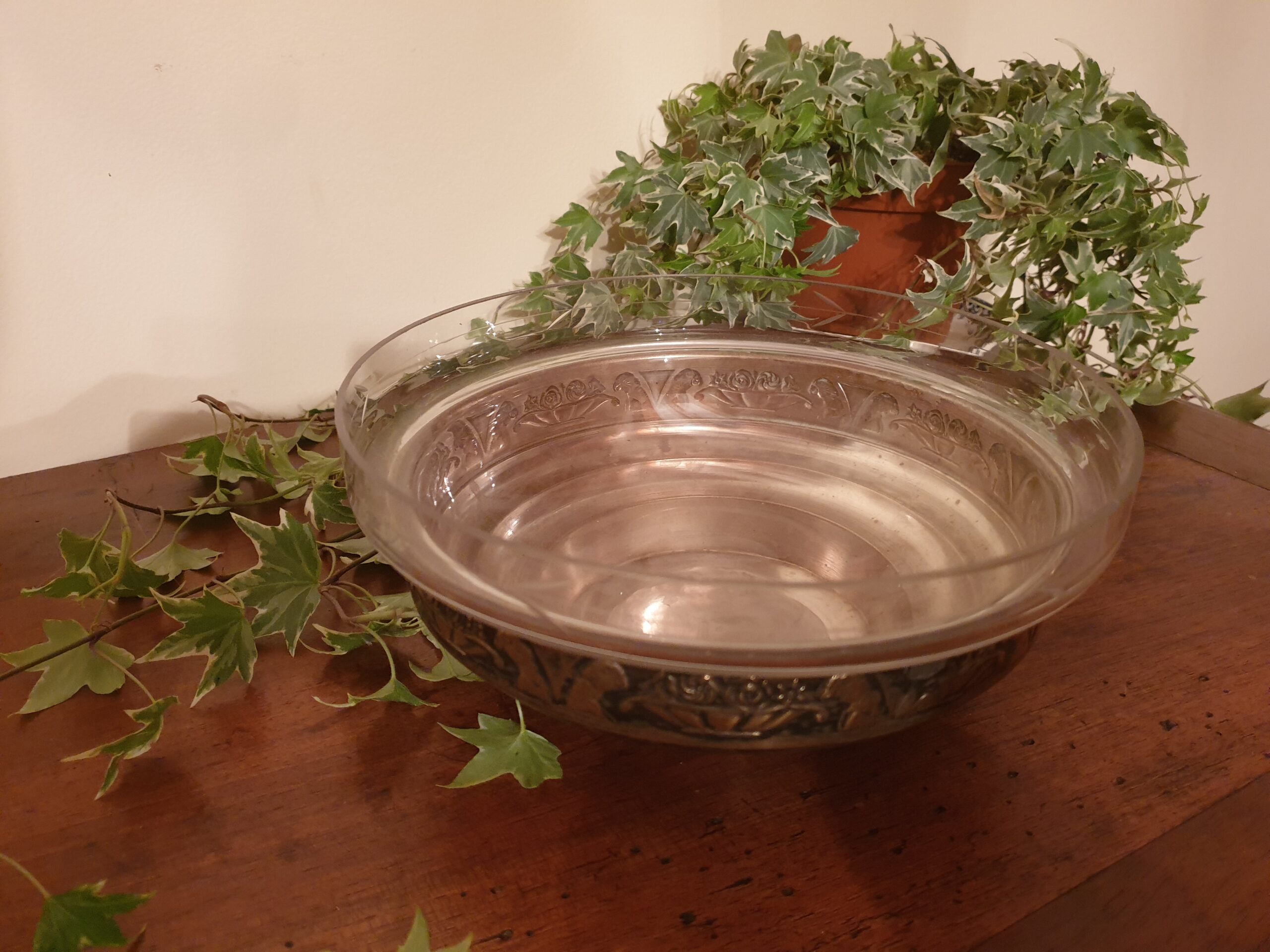 Contenu : 1 coupe en laiton argenté, 1 vasque en verre gravé