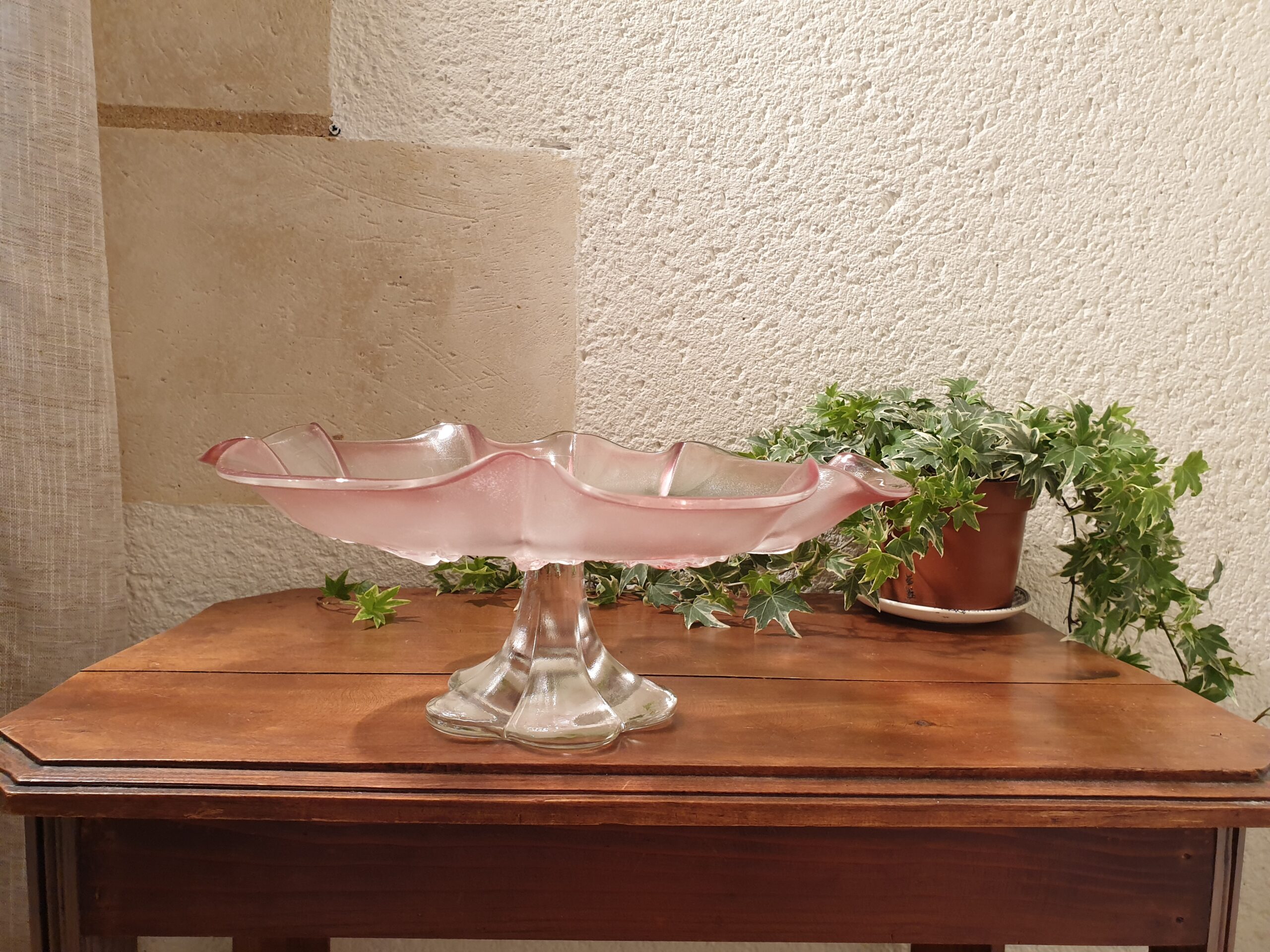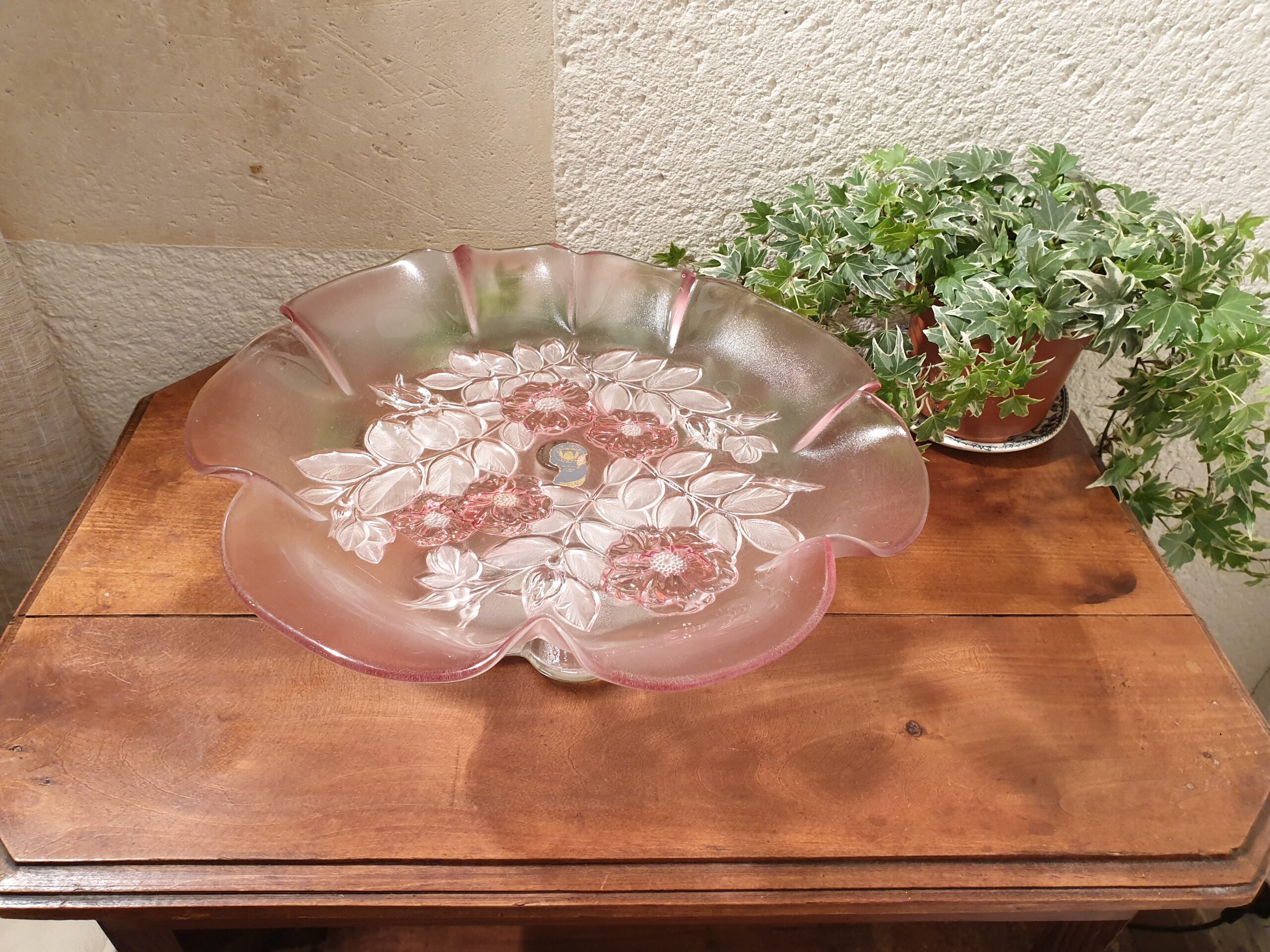 Les fleurs roses finement sculptées sur le verre confèrent à cette coupe une douceur et une légèreté qui la rendent unique. Elles ajoutent une touche florale et romantique, parfaite pour décorer vos repas ou mettre en valeur des fruits frais.