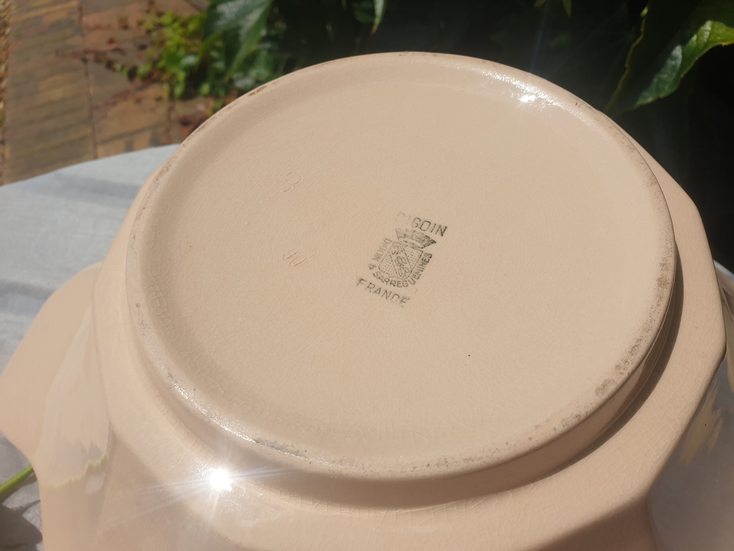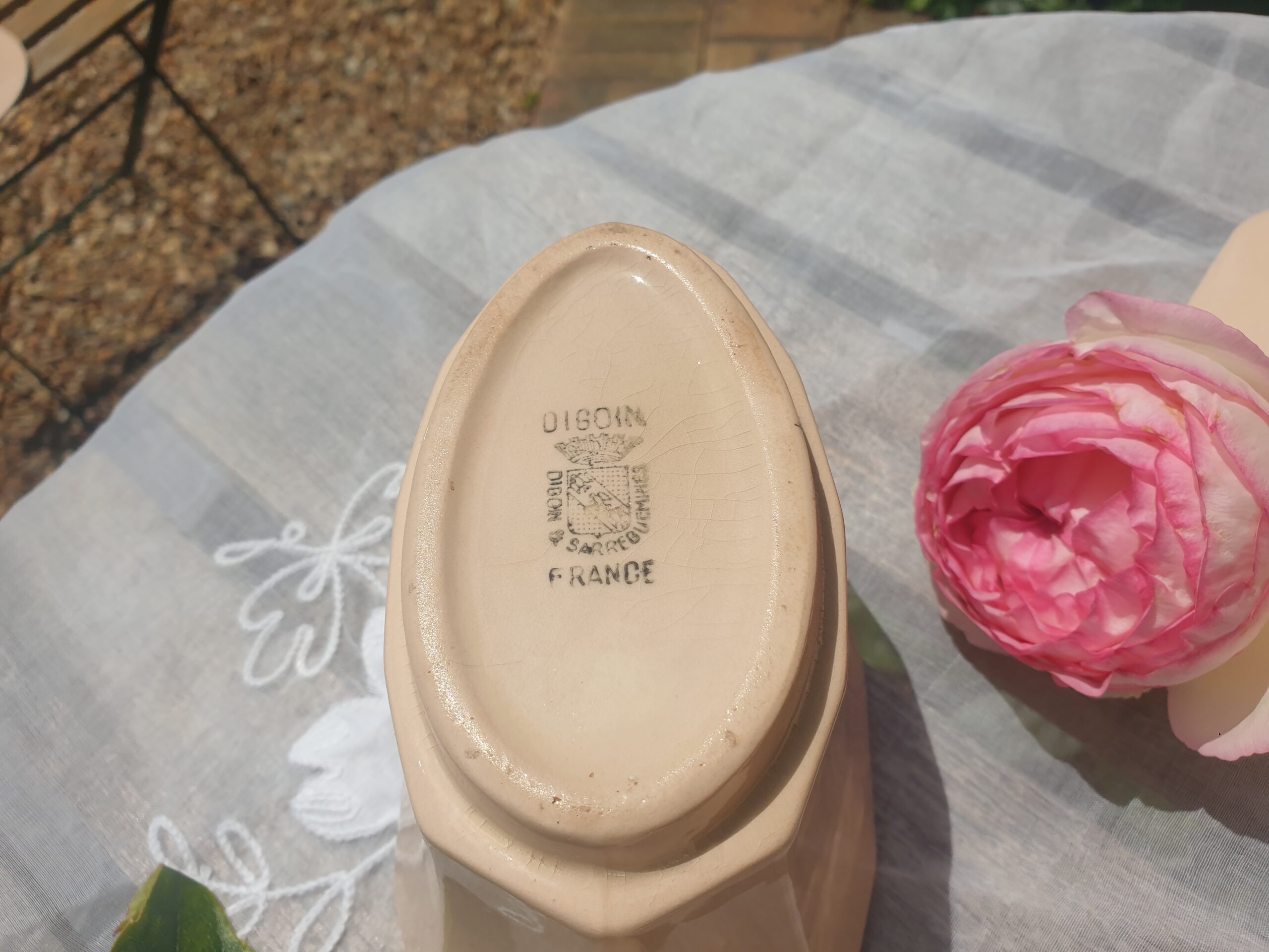 Le mariage entre la faïence de qualité, la teinte rose poudré et la signature des prestigieuses manufactures en fait une pièce unique. Un choix idéal pour les amateurs de vaisselle vintage ou les amoureux du bel art de la table.