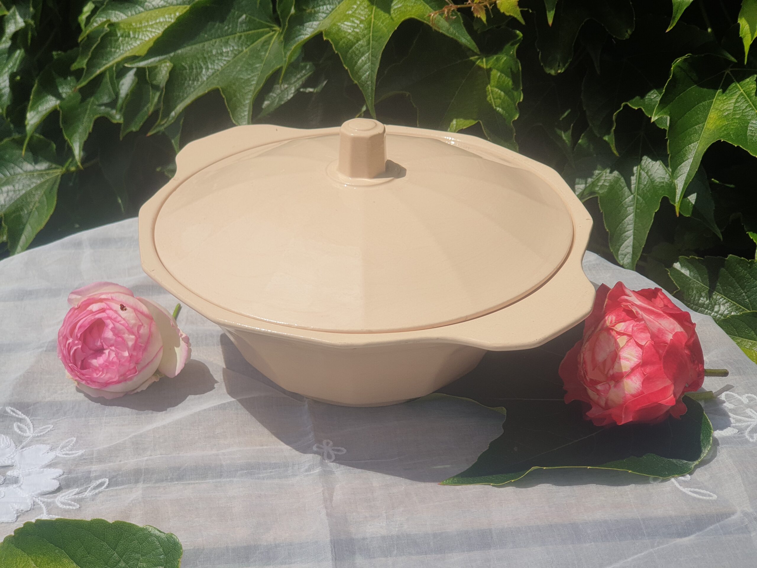 Ce service reflète l’élégance graphique de l’Art Déco, tout en conservant une grande douceur dans ses formes et ses couleurs. Il évoque les tables familiales soignées et le plaisir de partager des repas dans une belle vaisselle.