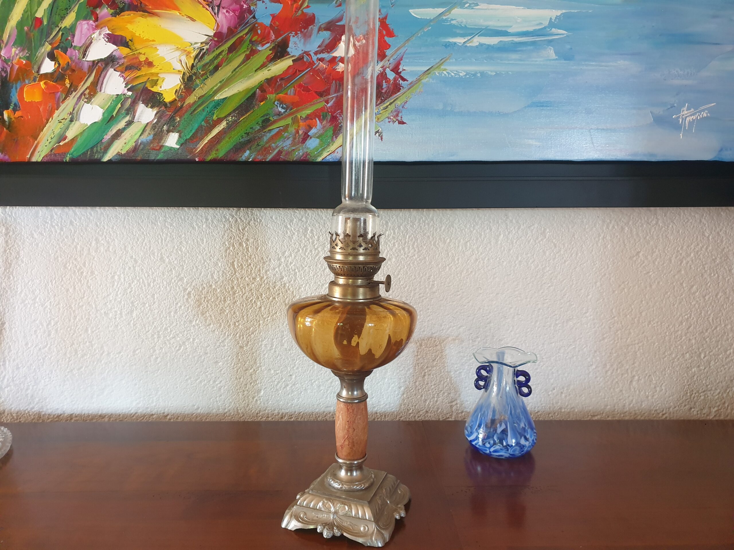 Les caractéristiques de la lampe à pétrole – Verre ambré et pied orné