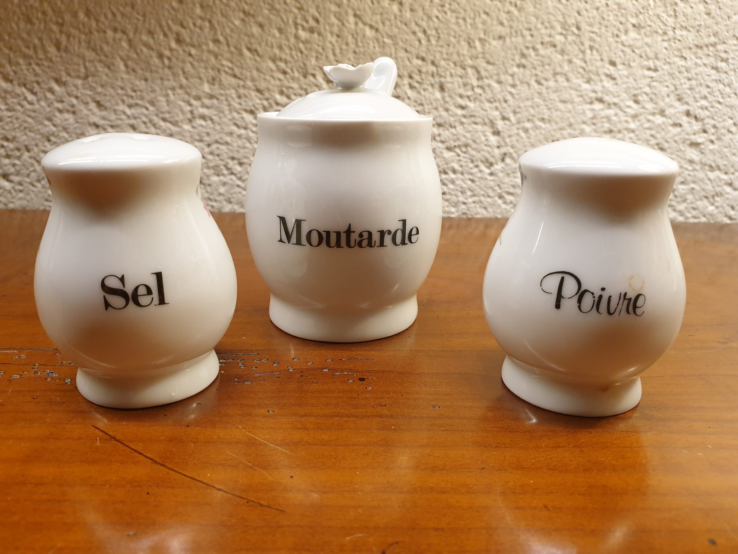 Contenu : 1 salière, 1 poivrier, 1 moutardier