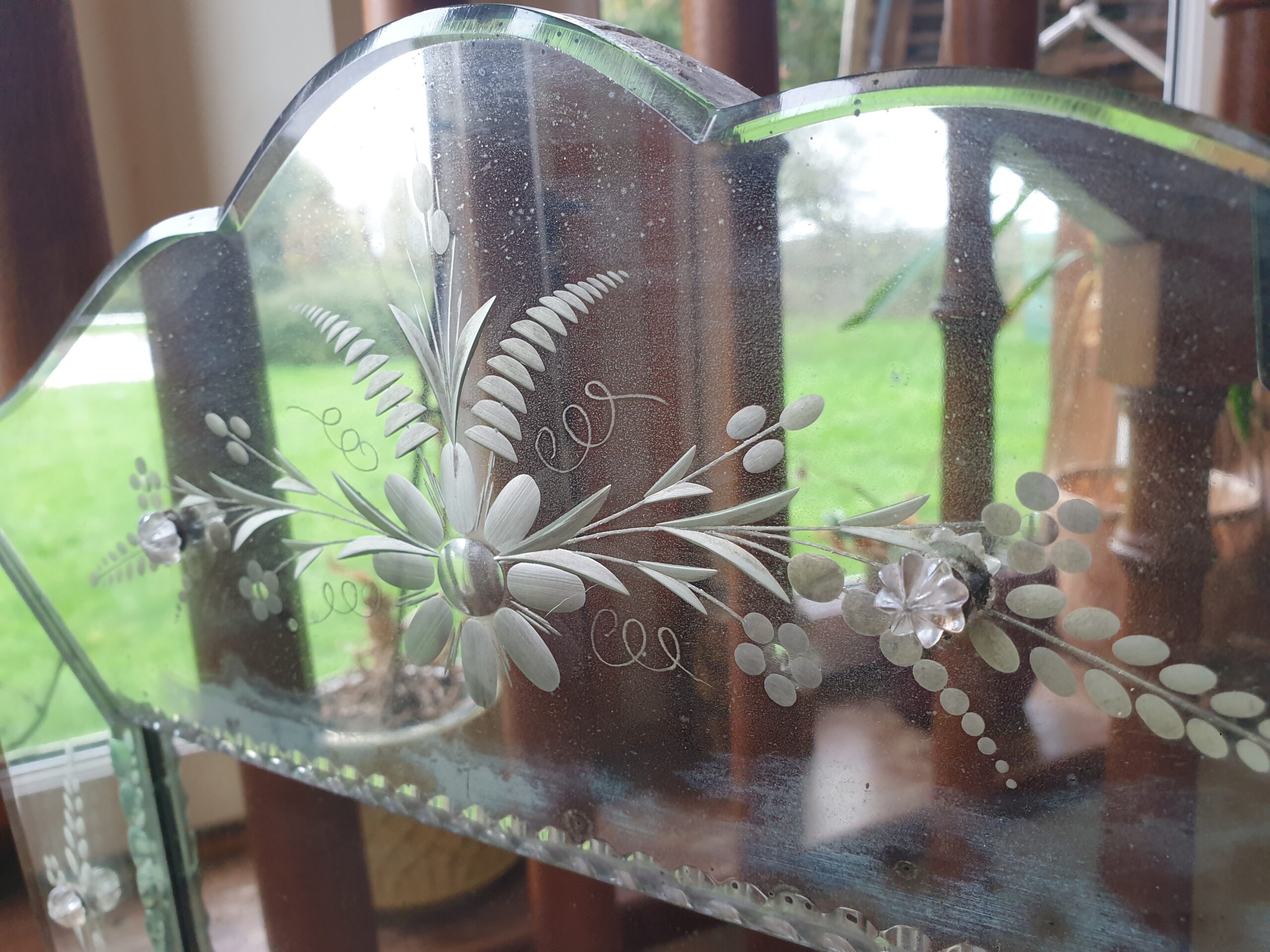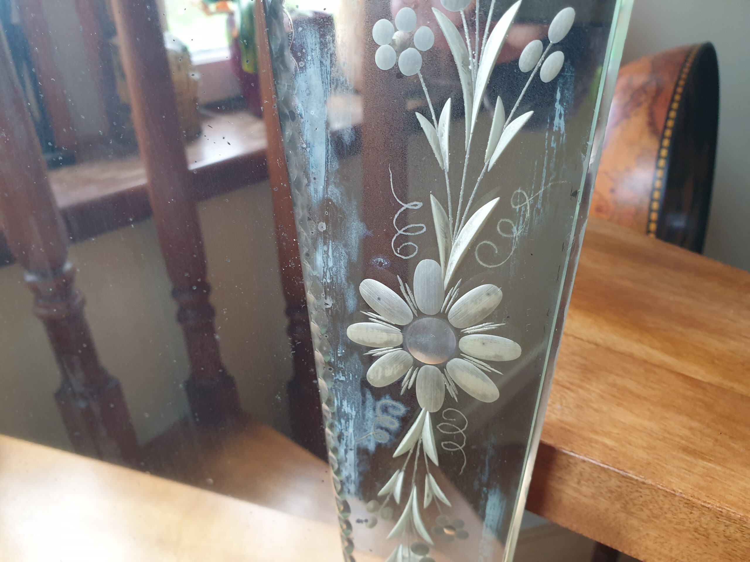 La parclose en verre ornée est l’un des éléments clés de ce miroir. Ce verre décoré avec des motifs floraux, travaillé à la main, donne au miroir son aspect unique et précieux. Il reflète l’artisanat vénitien typique du 19ème siècle.