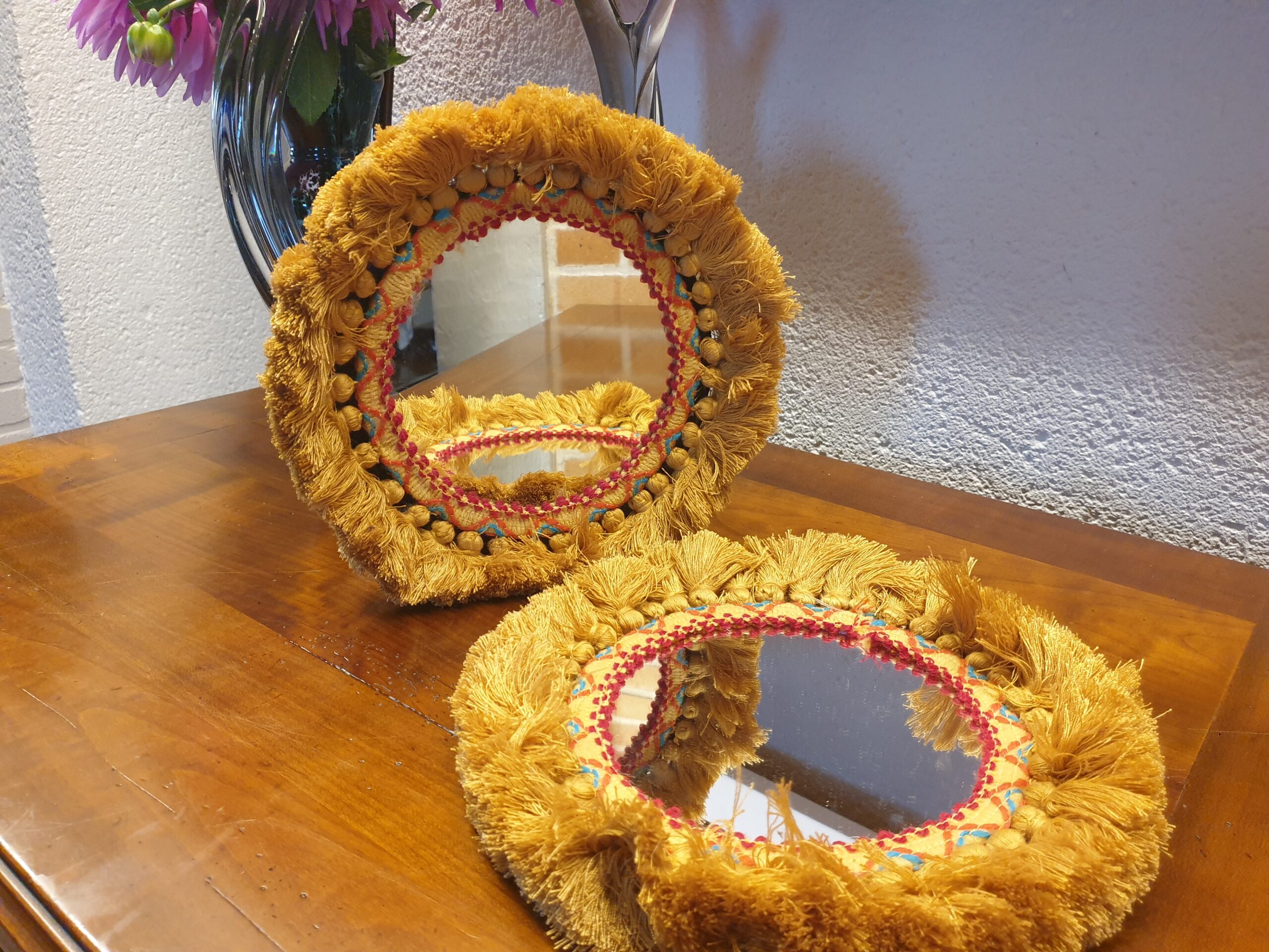 Ces miroirs artisanaux de style bohème allient élégance et authenticité. Leur design raffiné s’intègre aussi bien dans un intérieur moderne que dans une décoration ancienne. Véritables objets de caractère, ils apportent une atmosphère chaleureuse et une note d’exotisme unique.