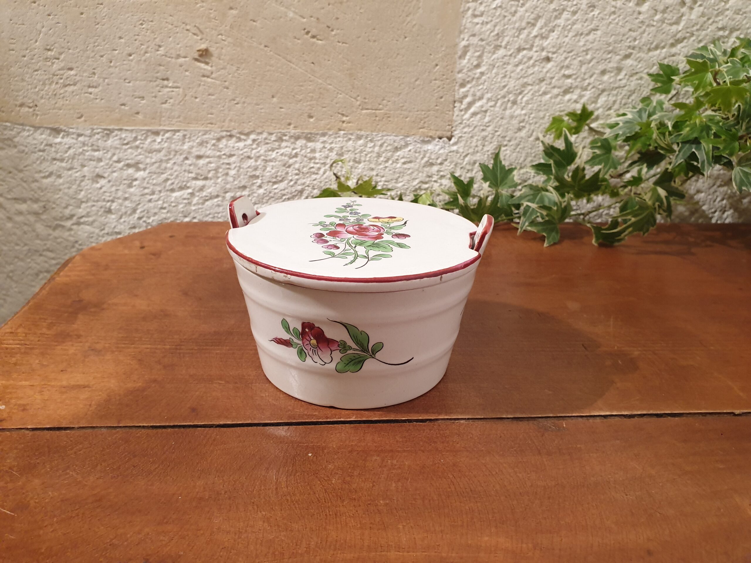 Nous vous proposons ce joli petit beurrier ou bonbonnière en céramique de Lunéville, décoré d’un motif floral délicat. Il apportera une touche chic et intemporelle à vos tables, tout en alliant beauté et fonctionnalité.