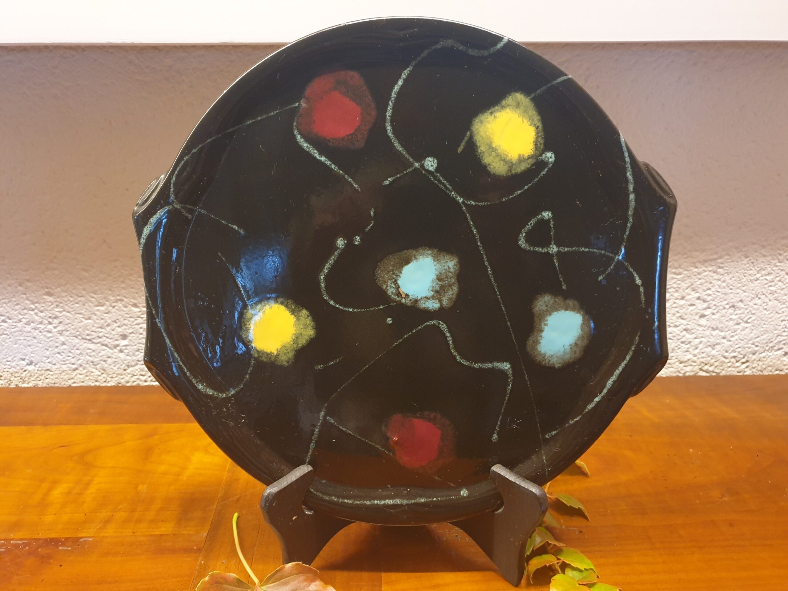 Avec ses motifs colorés et son fond noir profond, ce plat reflète à merveille l’esthétique dynamique et joyeuse des années 50. Son graphisme unique attire immédiatement le regard et donne du caractère à votre présentation.