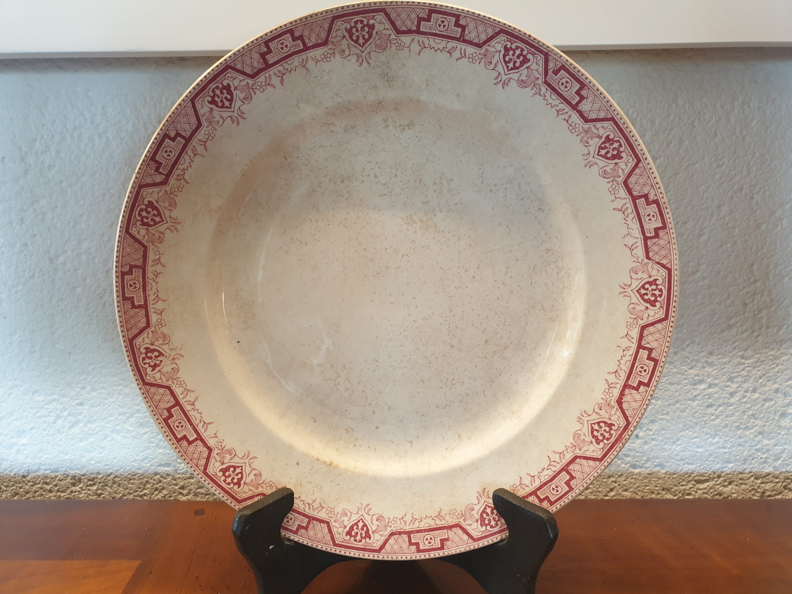 Les créations de la faïencerie St Amand sont particulièrement appréciées des amateurs de vaisselle ancienne. Ce plat, avec son décor géométrique unique, constitue un véritable trésor pour les passionnés d’arts de la table et de faïence française.