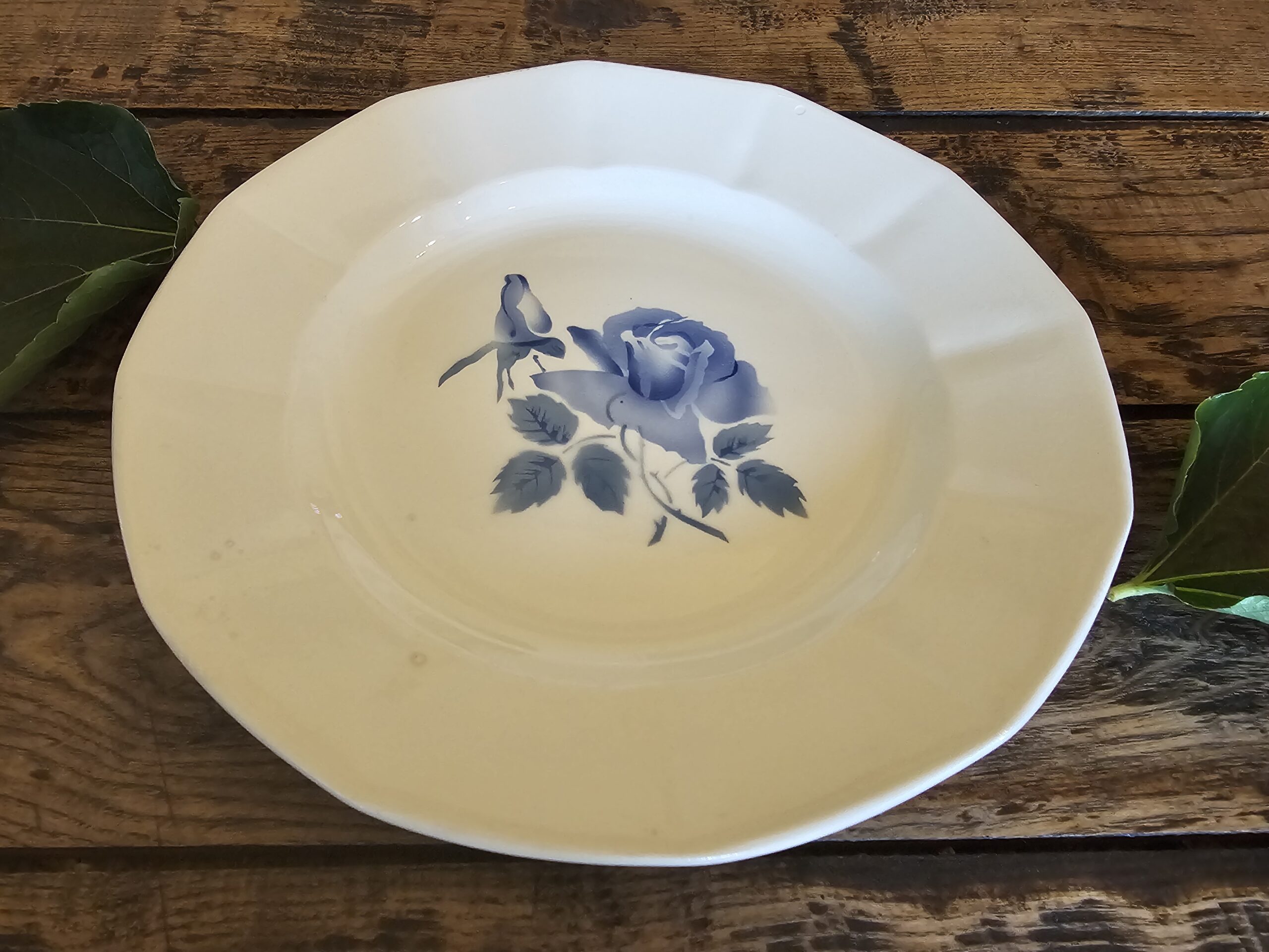 Apportez à votre intérieur une note romantique avec ce plat ancien Digoin – Rose Bleue, entre charme rétro et élégance française.
