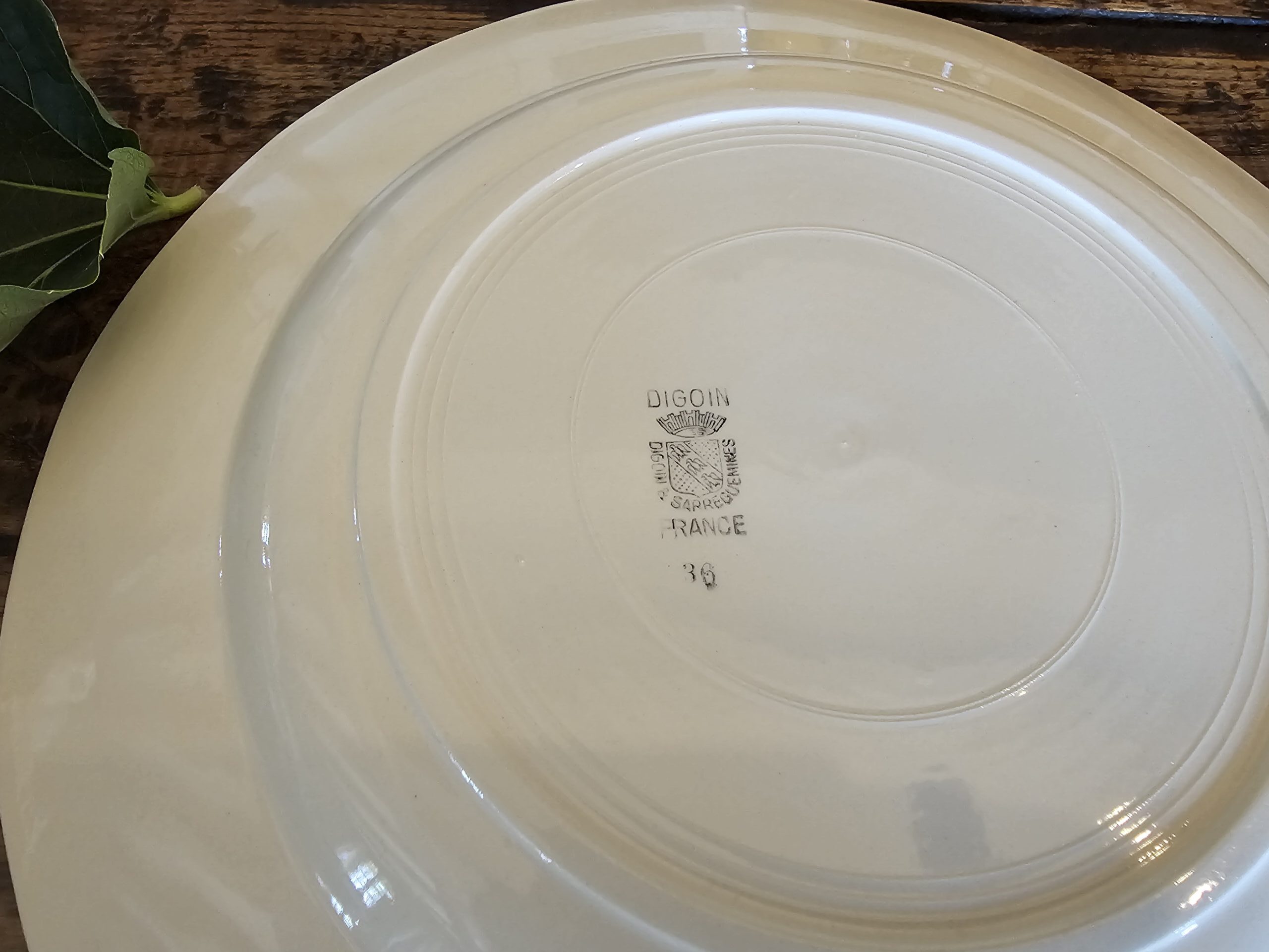 Issu des faïenceries de Digoin, ce plat reflète un savoir-faire artisanal reconnu. Sa forme ronde classique et son décor floral délicat en font une pièce recherchée par les collectionneurs et amateurs de vaisselle vintage.