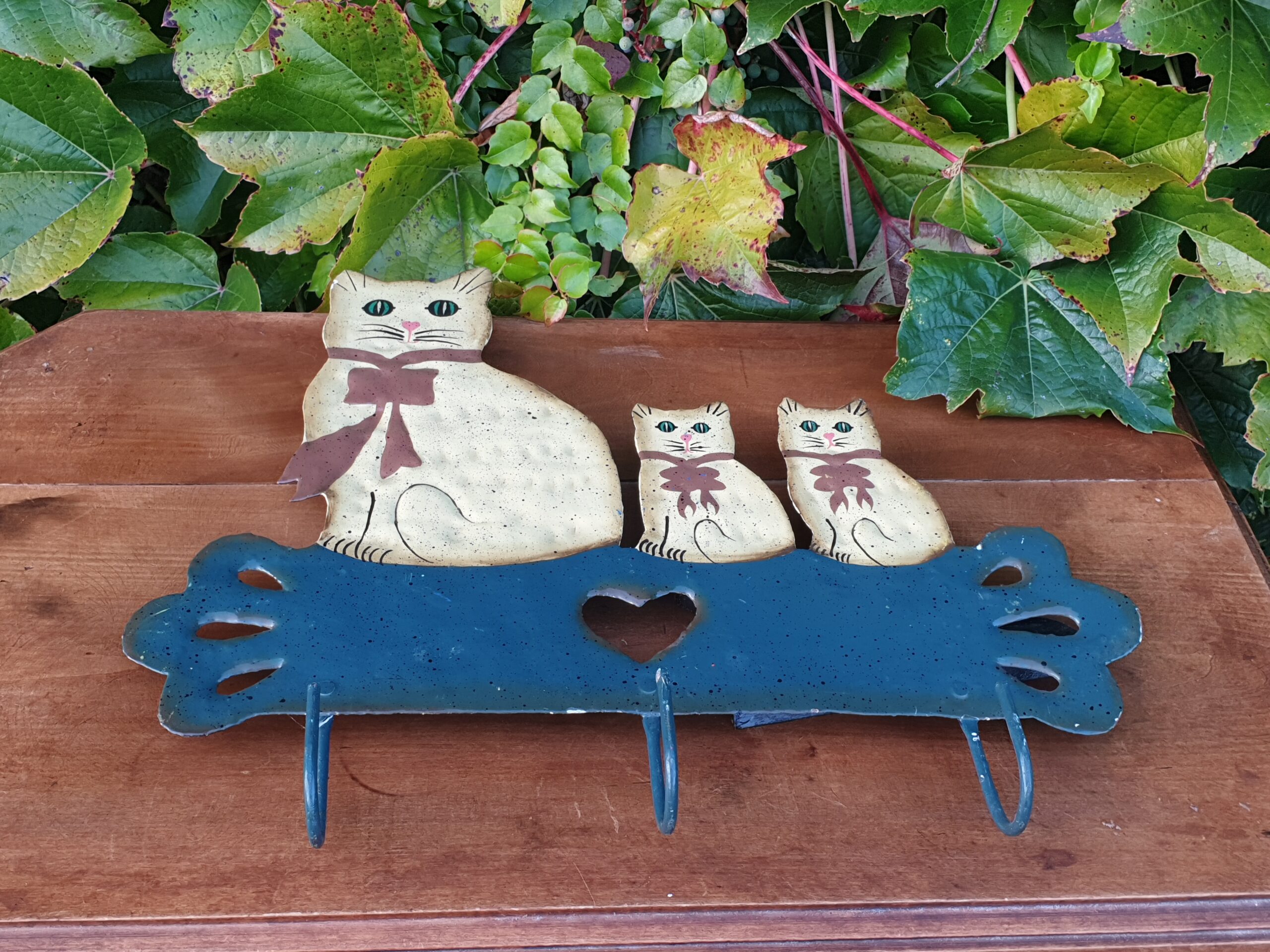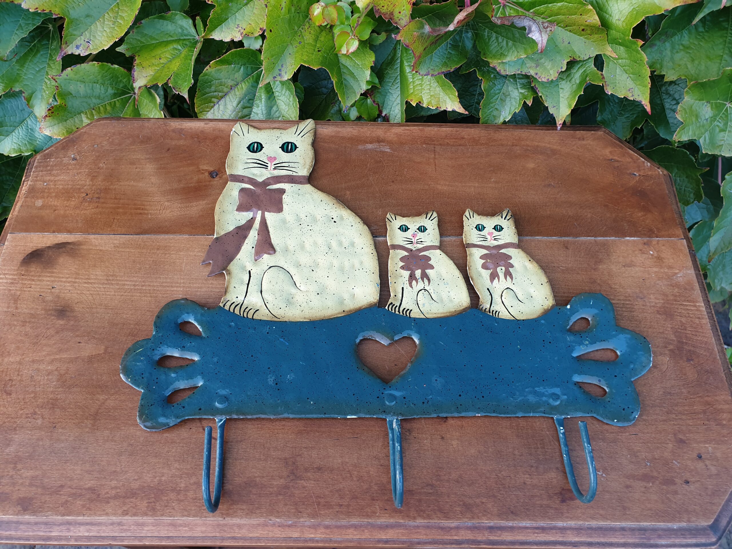 Porte-Manteau Vintage en Tôle Émaillée : Charme et Esprit Félin