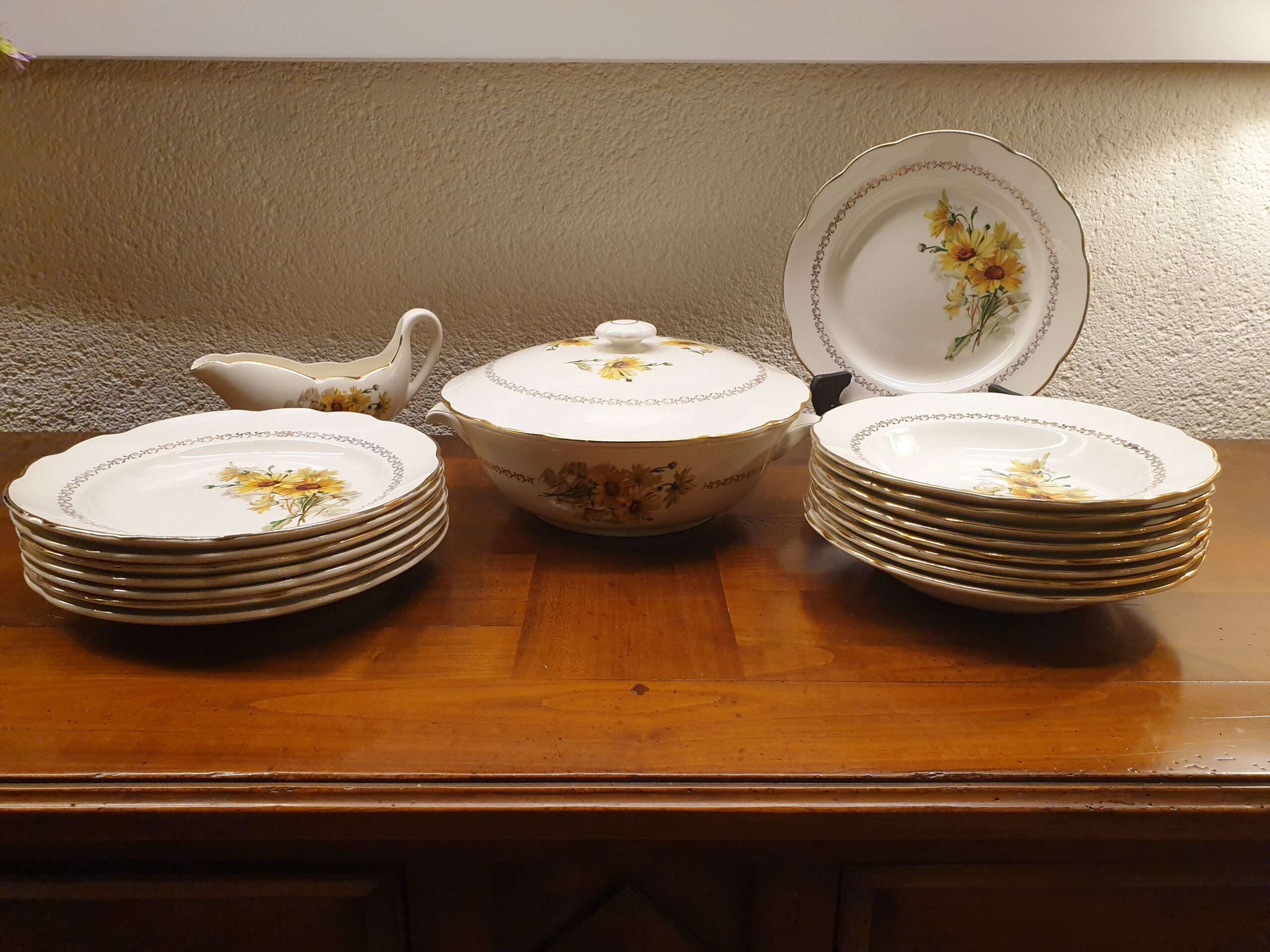 Ce service est un véritable trésor pour les collectionneurs et les passionnés de faïence de qualité. Ses pièces, finement décorées, vous accompagneront pour de nombreuses années de repas élégants.