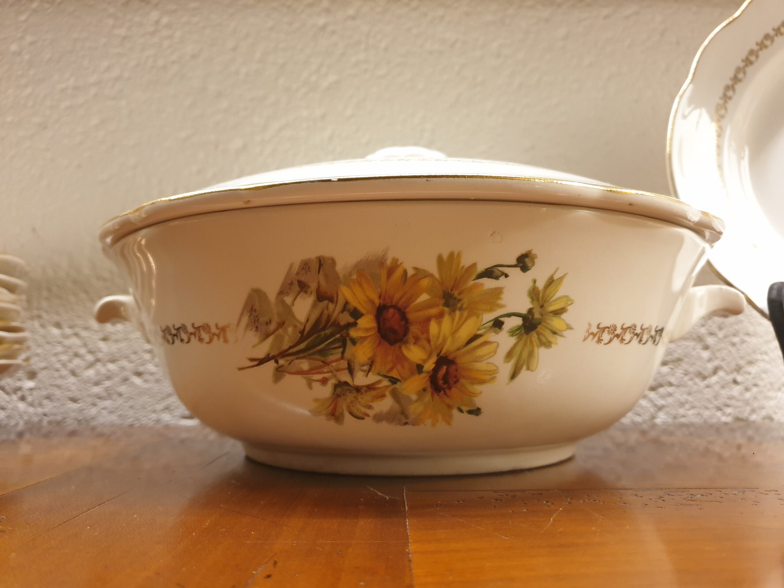 Contenu : 10 assiettes plates, 10 assiettes creuses, 1 saucière, 1 soupière