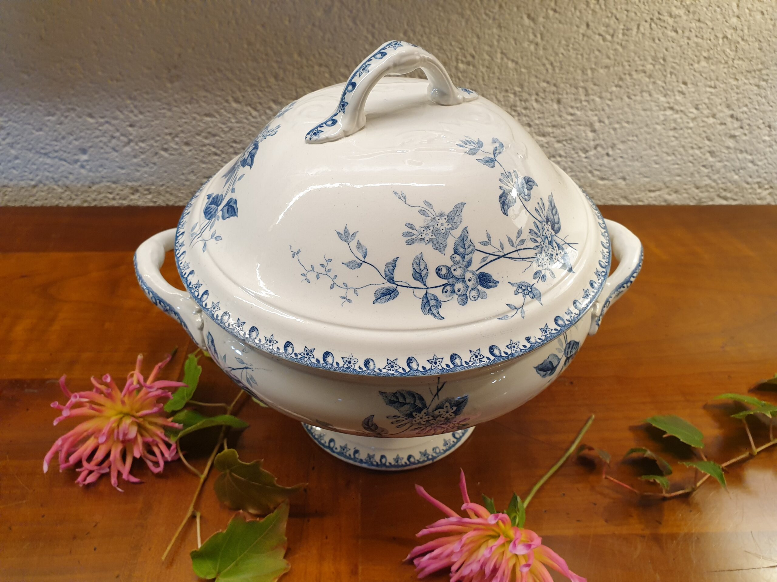 Avec ses motifs de fleurs bleues raffinées et sa silhouette harmonieuse, cette soupière s’intègre aussi bien dans une table classique que dans une décoration vintage. Son charme d’antan évoque les repas chaleureux d’autrefois.