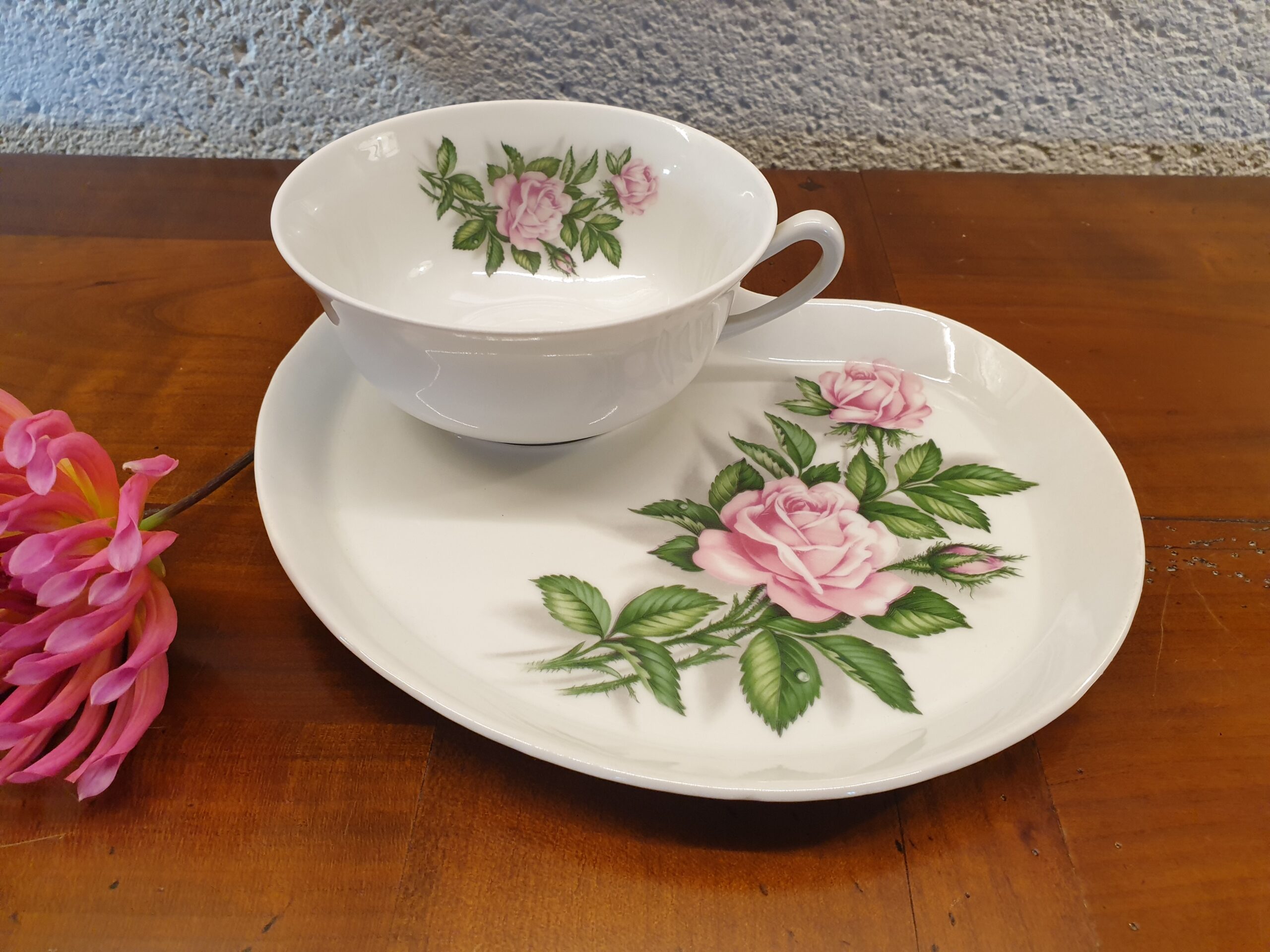 Tasses et Soucoupes en Porcelaine de Limoges : Élégance et Douceur Florale