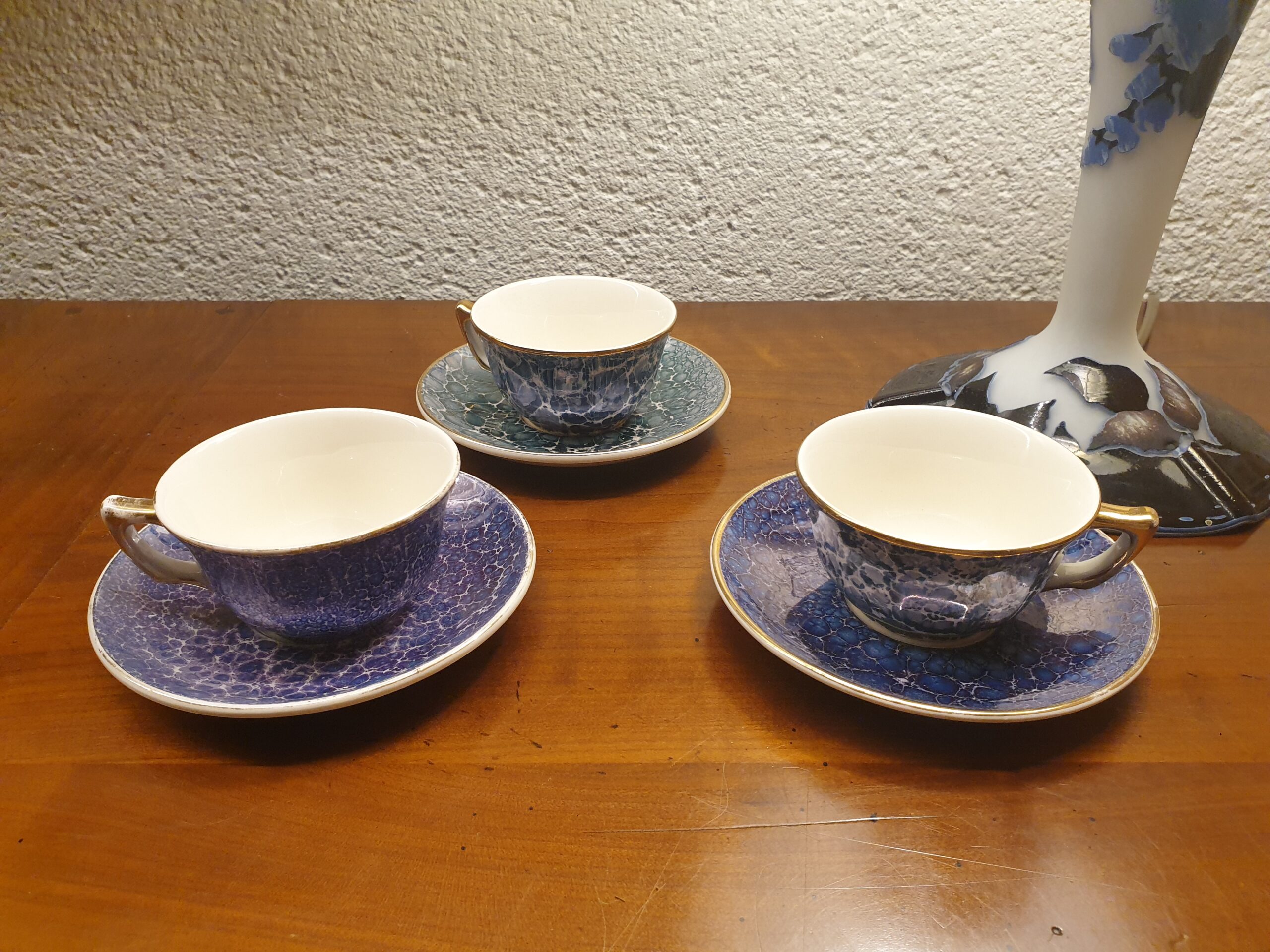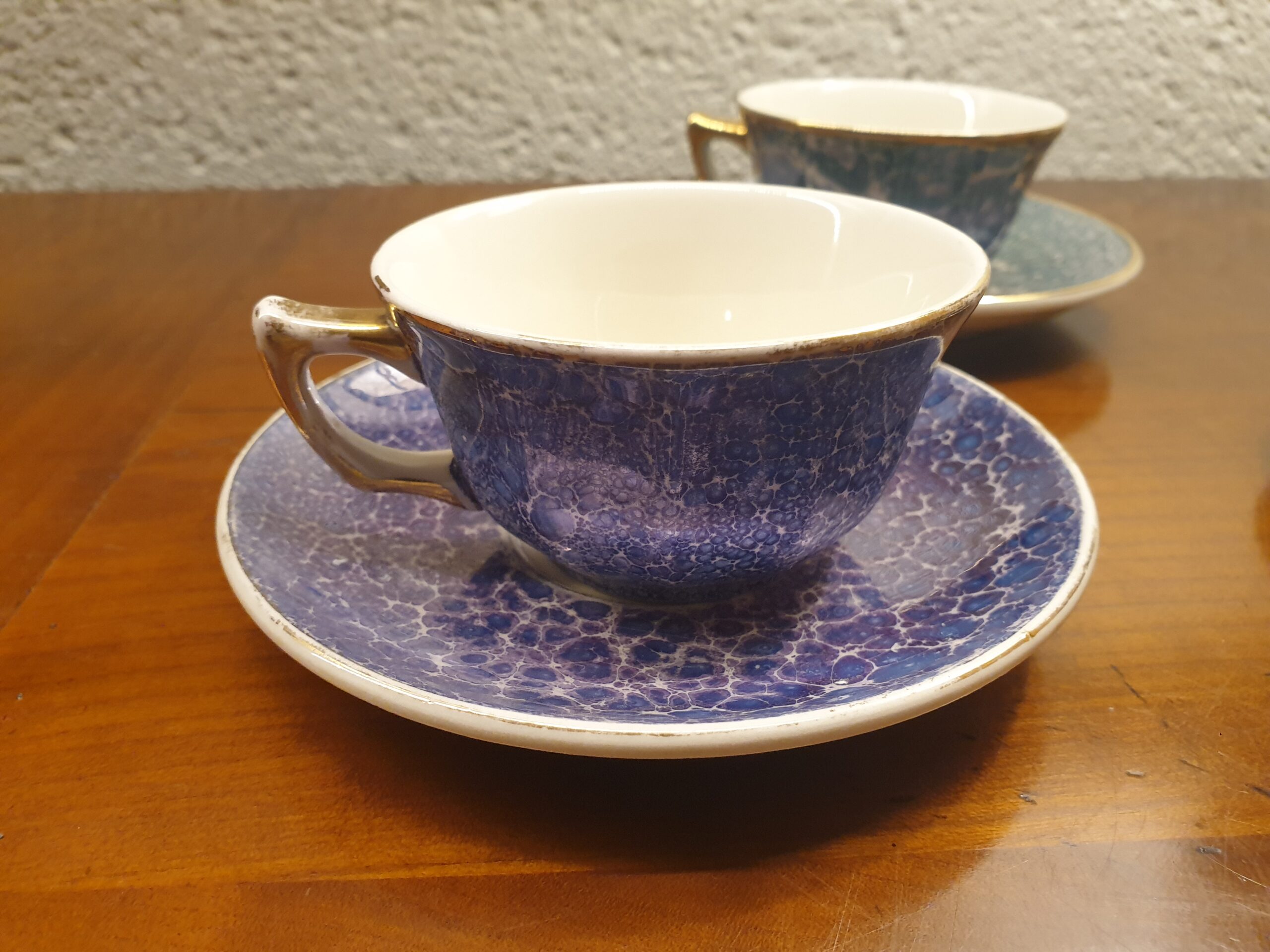 Ces tasses anciennes de Villeroy et Boch, au magnifique effet marmoréen, allient la noblesse de la porcelaine à un design intemporel. Leur texture unique, inspirée du marbre, leur confère un charme élégant et une originalité qui saura sublimer vos moments de dégustation.