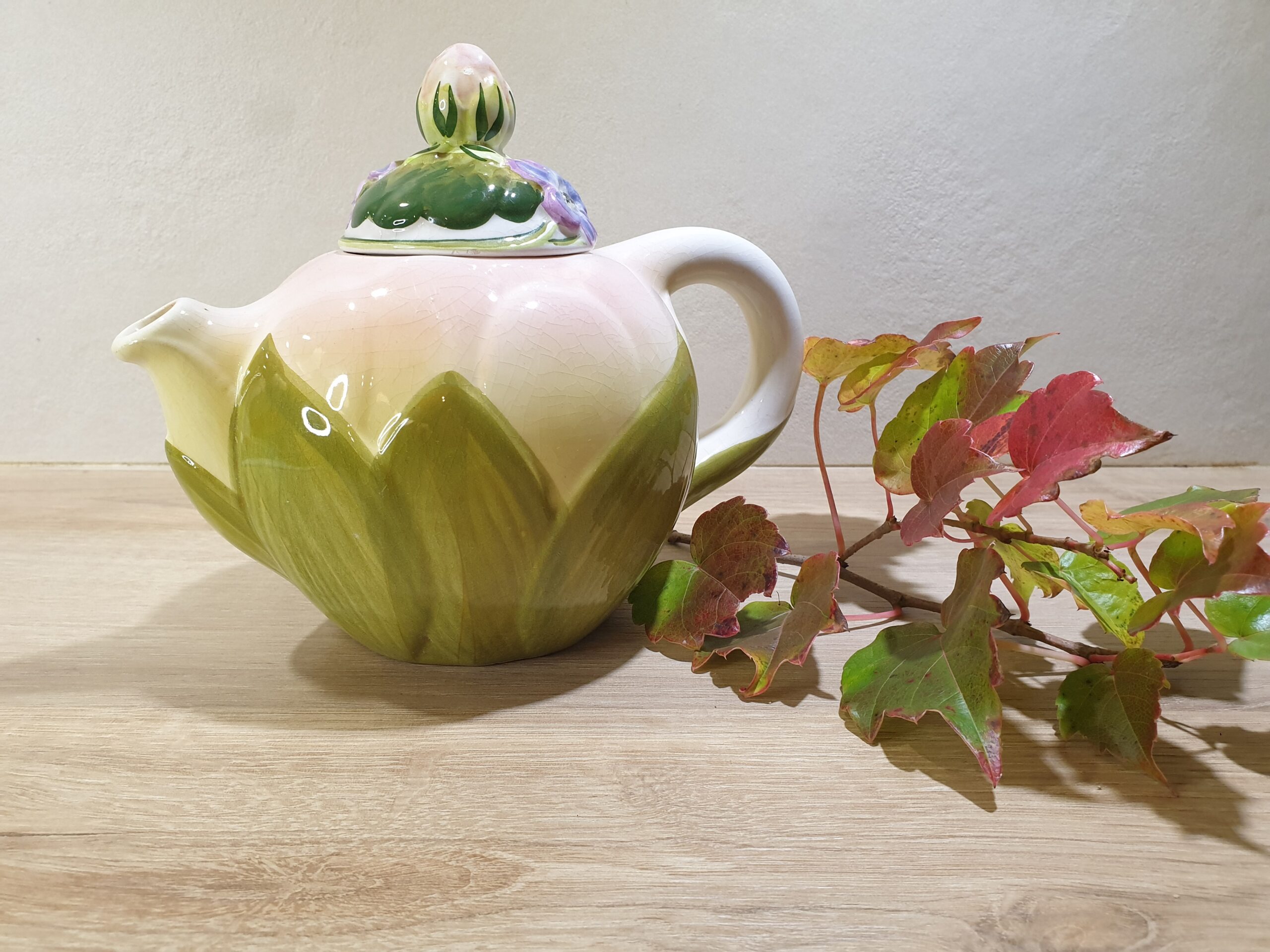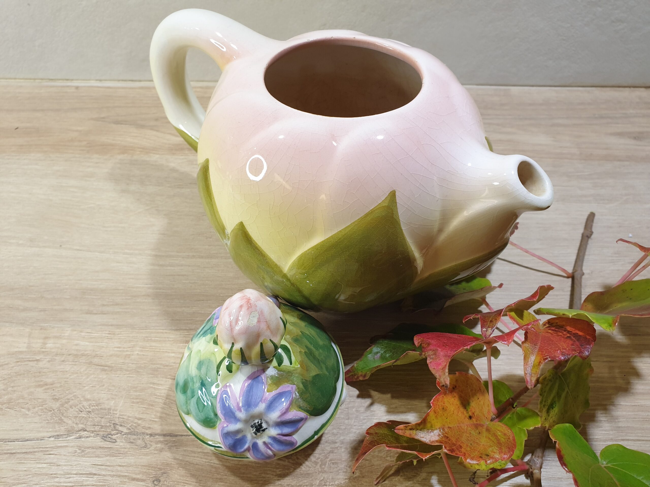 Théière feuille de lotus en faïence