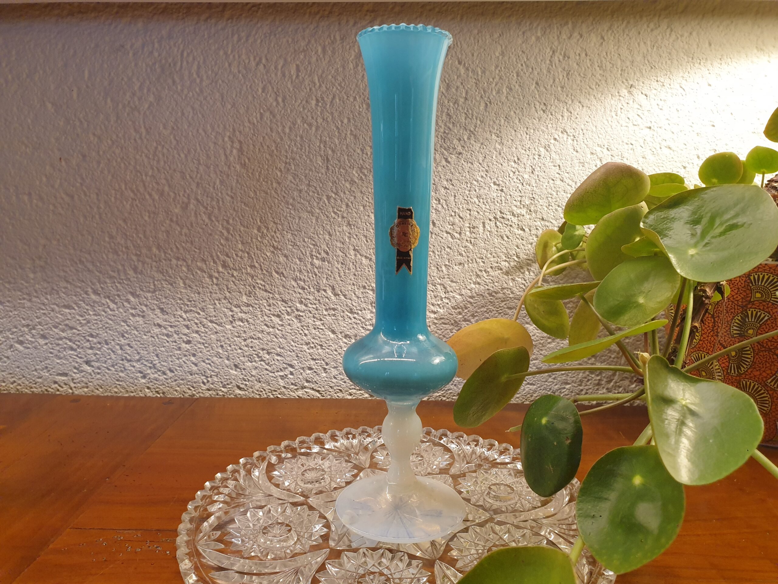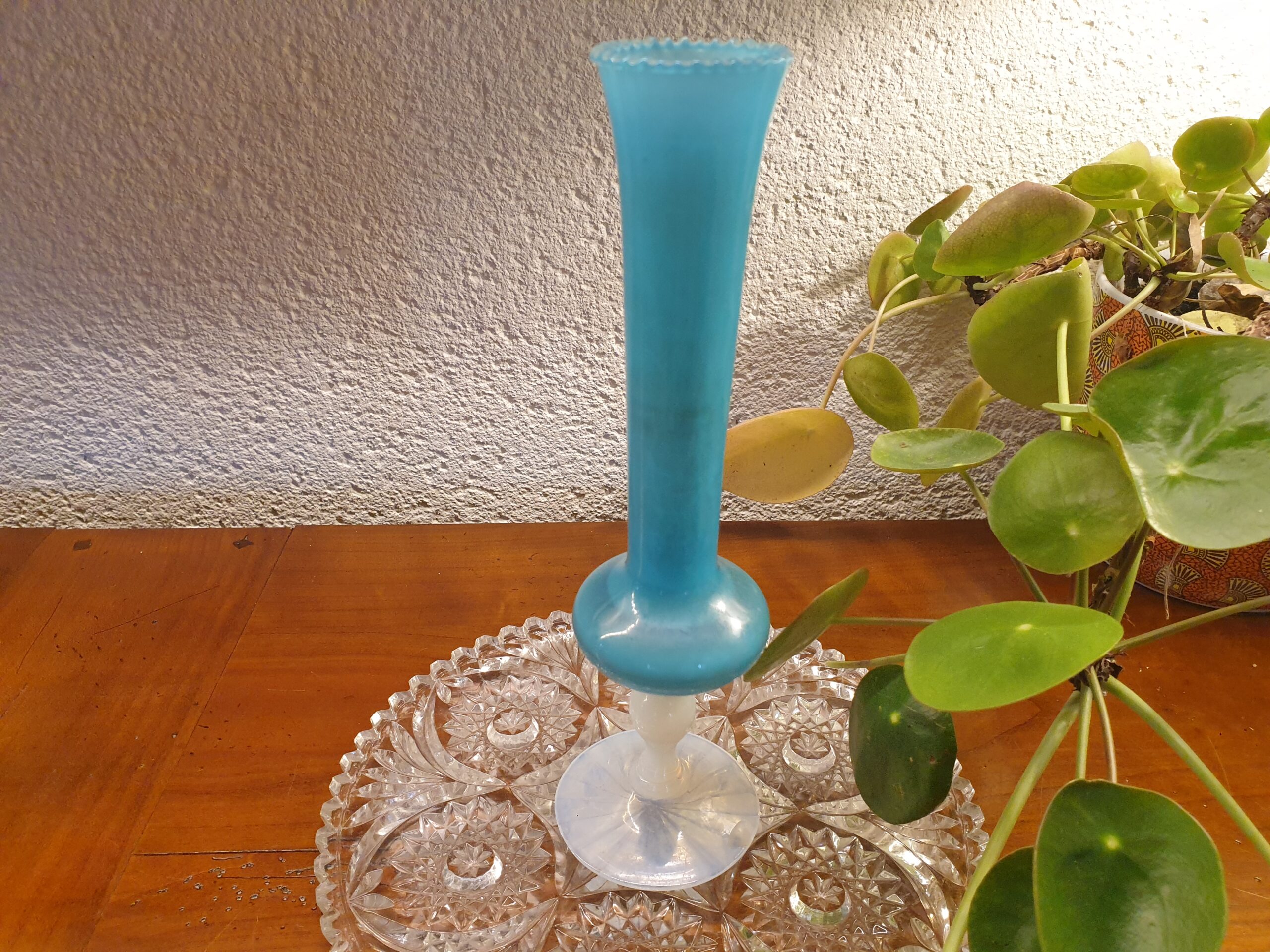 Le vase soliflore en opaline italienne n’est pas seulement un objet fonctionnel, mais aussi une véritable œuvre d’art. Sa couleur bleue lumineuse et sa texture satinée confèrent à votre intérieur une atmosphère élégante et chaleureuse. C’est également un choix parfait pour offrir en cadeau à un amateur de beaux objets ou pour enrichir votre propre collection.