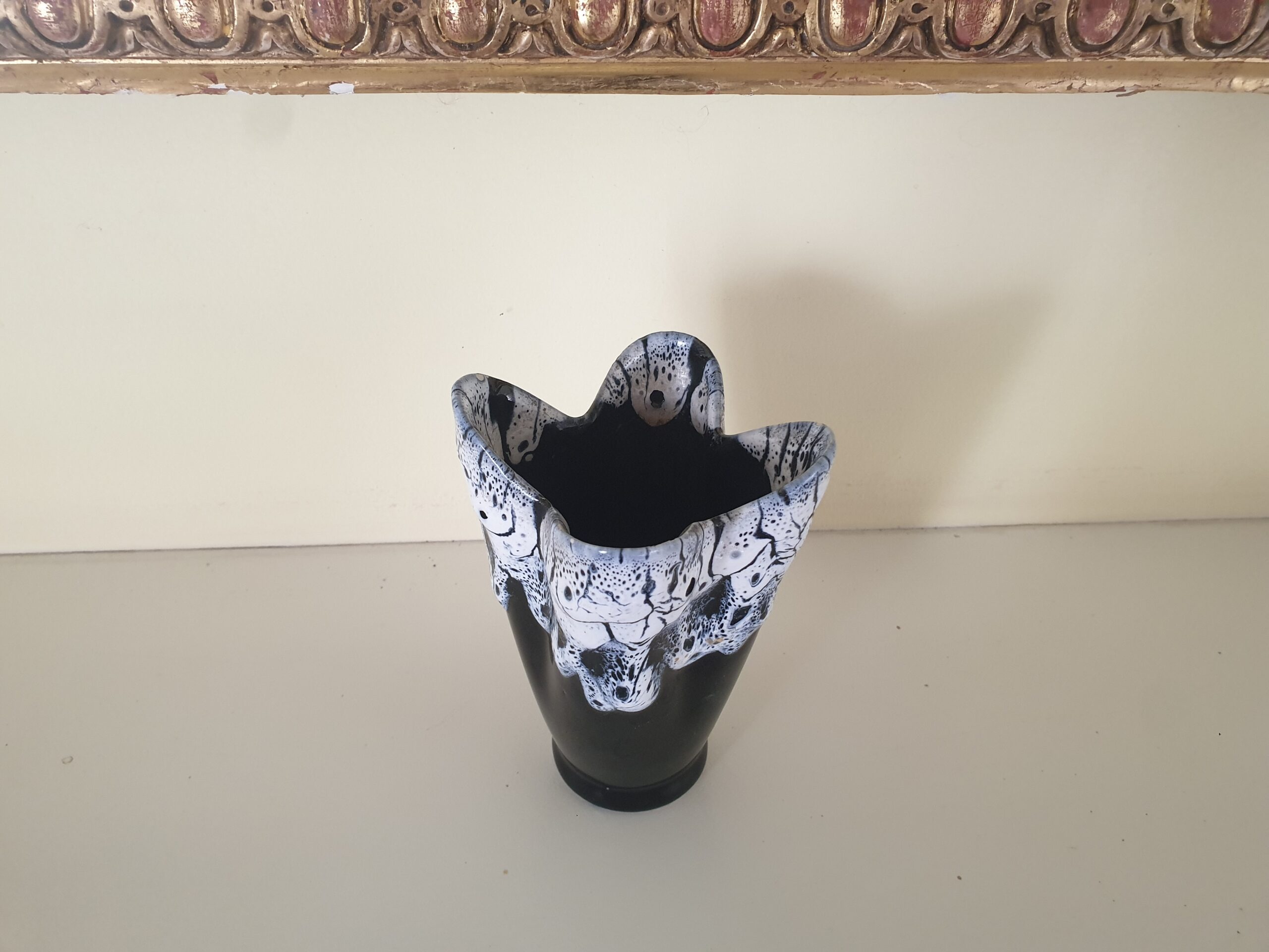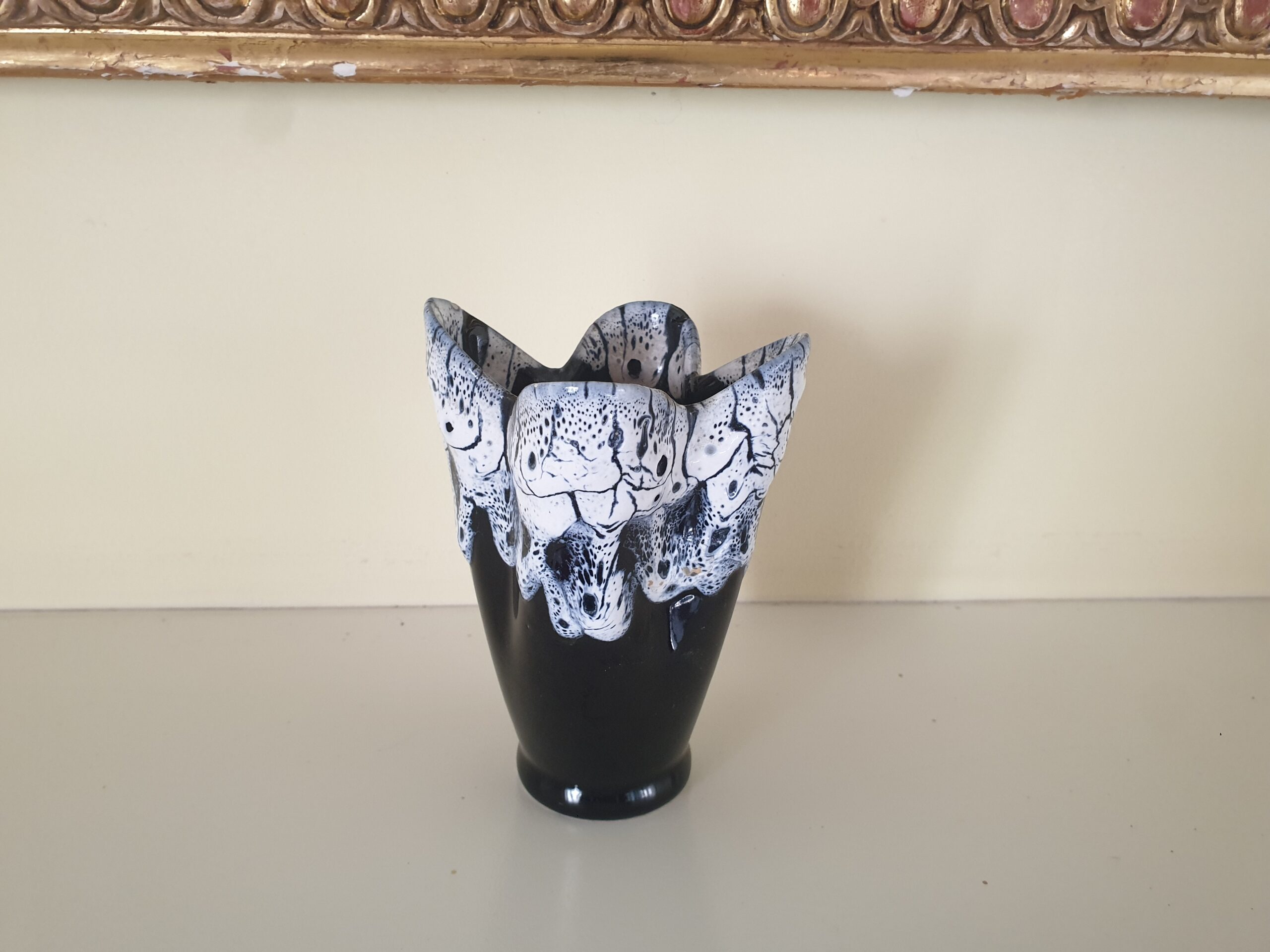 Ce charmant vase tulipe Fat Lava ancien est un véritable trésor pour les passionnés de céramiques. Avec sa forme originale et ses teintes vibrantes de noir et de violet, il ne manquera pas de captiver l’attention et de susciter l’admiration de vos invités.