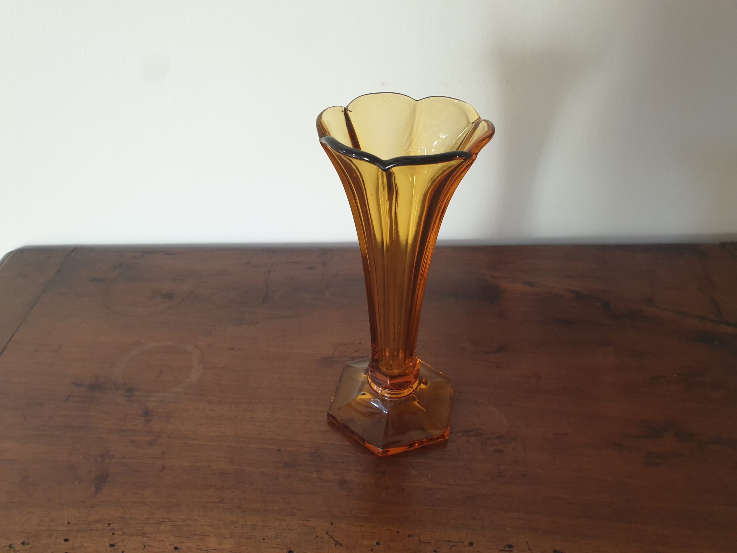 Vase Tulipe Val Saint Lambert Ambre : L’Intemporelle Élégance de l’Art Déco