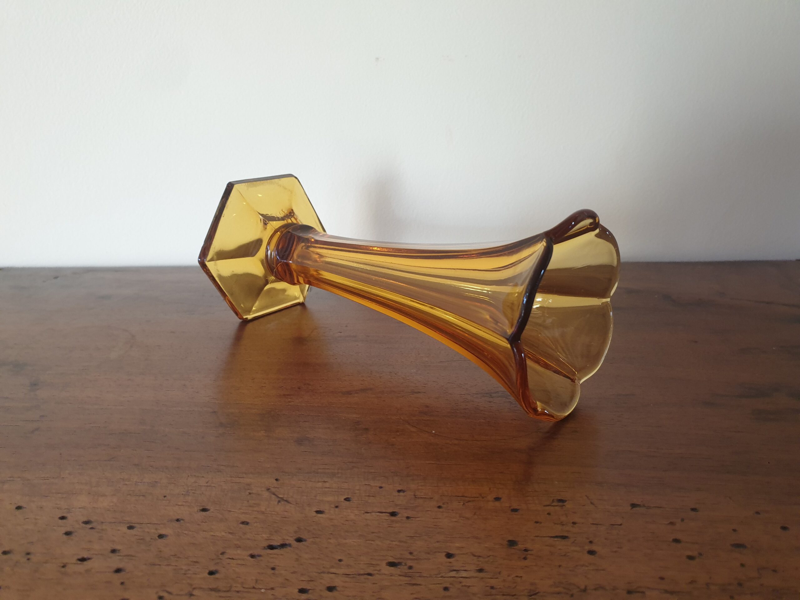 Son design classique et sa couleur ambrée chaleureuse transformeront votre espace. Ce vase n’est pas seulement un élément décoratif, mais aussi un témoignage de l’histoire du design du XXe siècle, apportant une note de luxe et de sophistication à vos pièces.