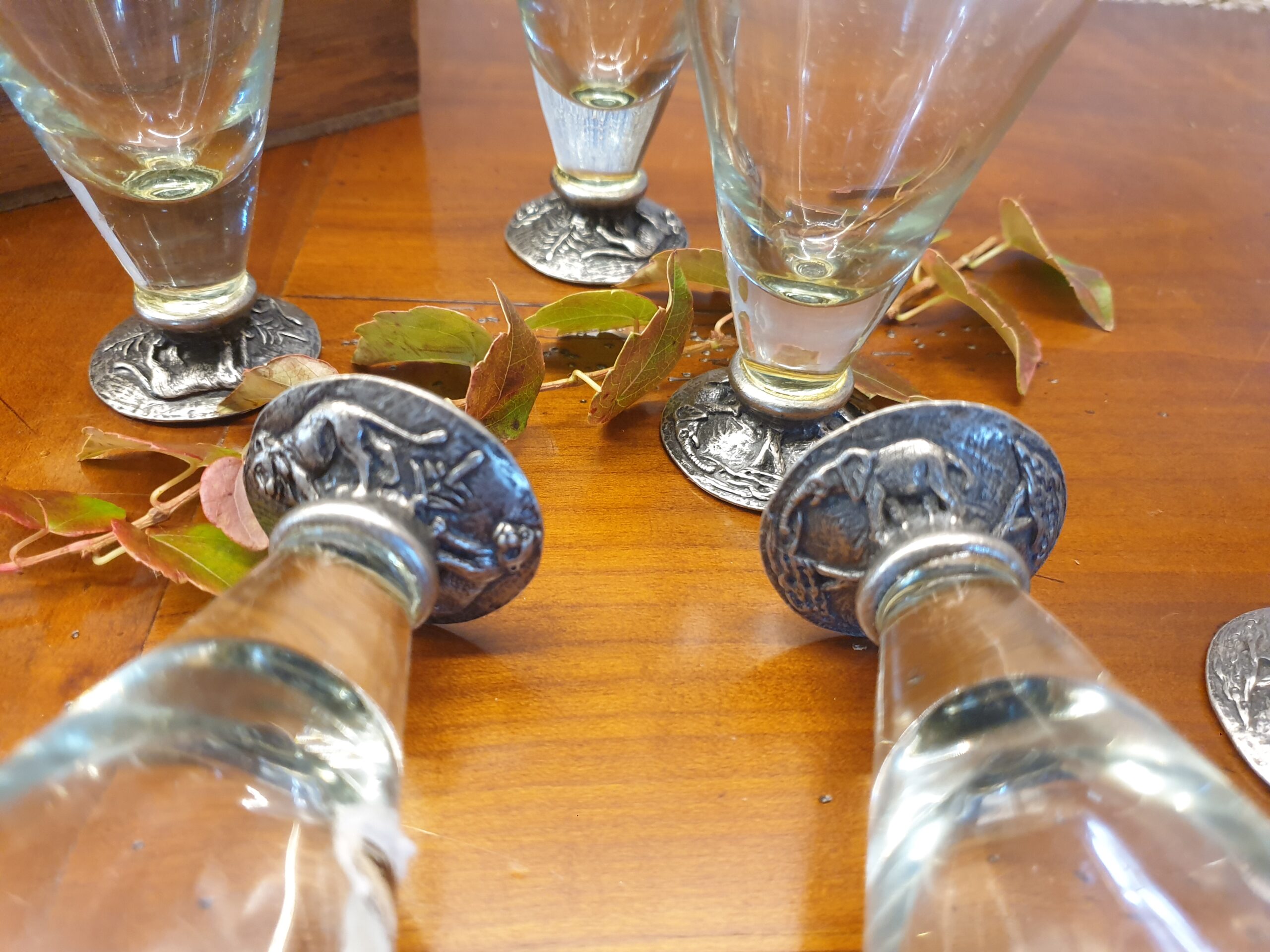 Le décor d’animaux sculptés et le pied en étain apportent une touche d’originalité et d’élégance à vos dégustations. Ces verres sont l’ajout parfait pour ceux qui recherchent des pièces uniques alliant artisanat et beauté naturelle.