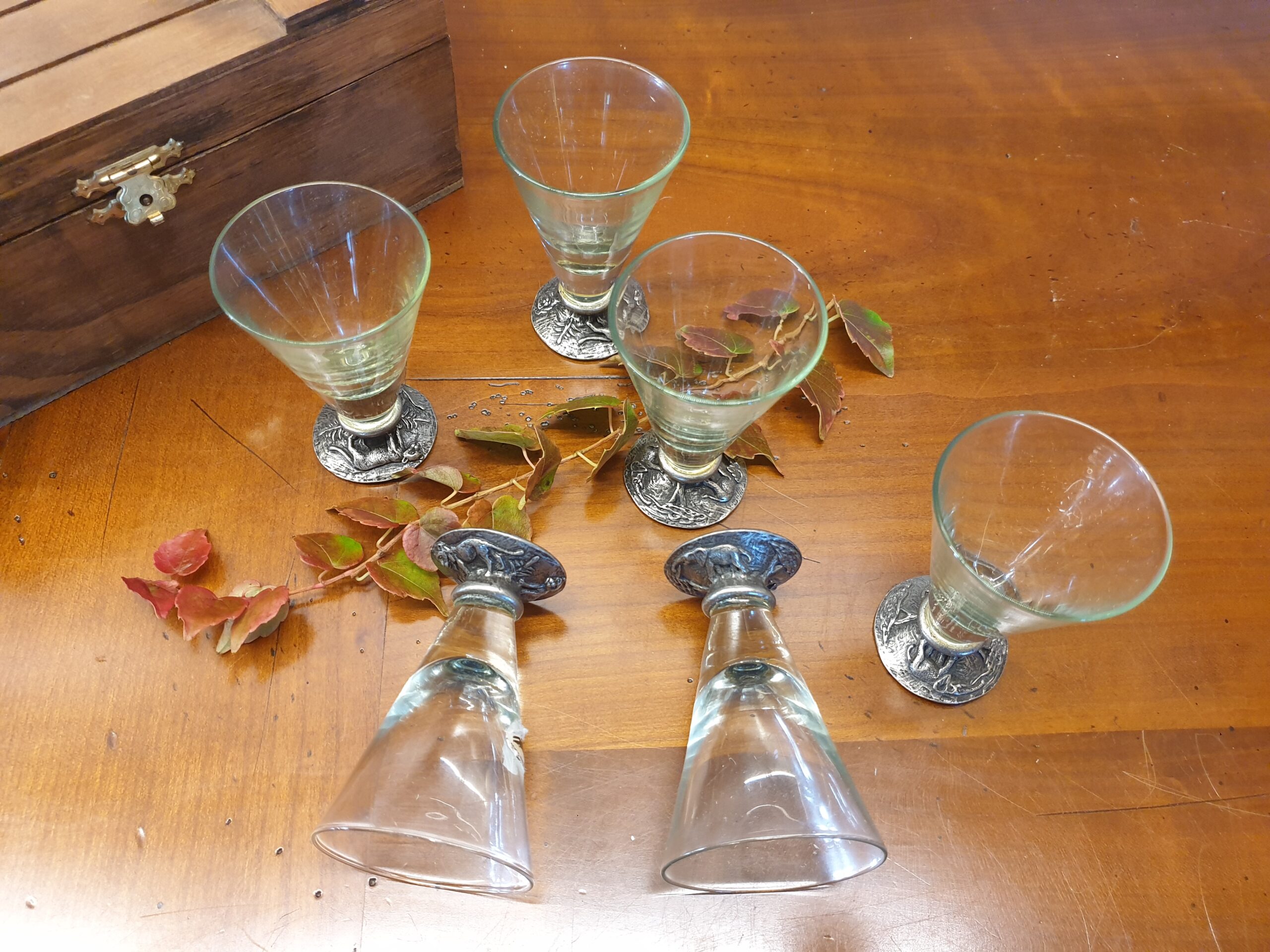 Le pied en étain de ces verres assure une stabilité et une solidité remarquables. Ce matériau, noble et intemporel, confère à chaque verre une sensation de poids et de qualité. L’étain, finement travaillé, crée un contraste parfait avec la légèreté du verre, offrant ainsi un équilibre idéal.